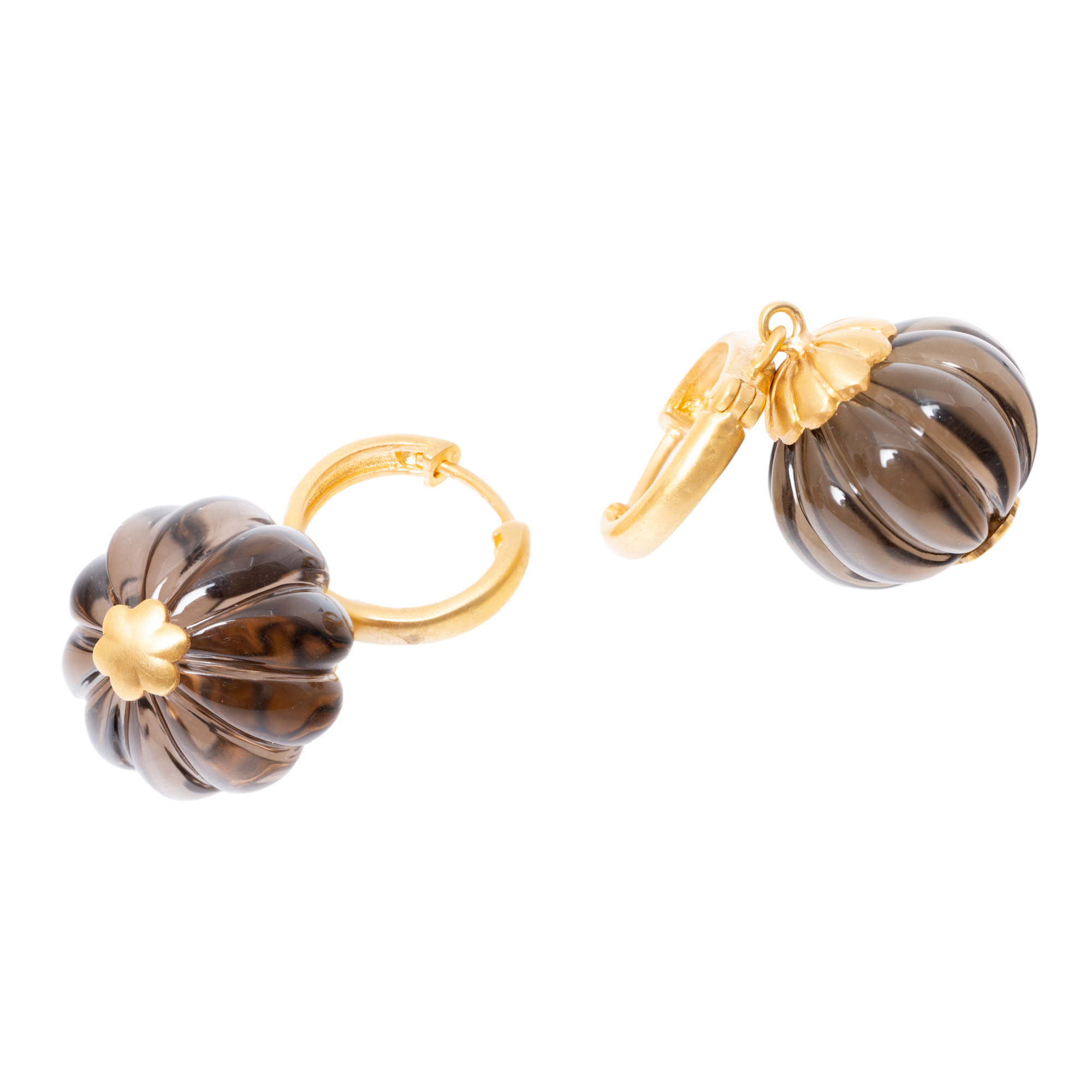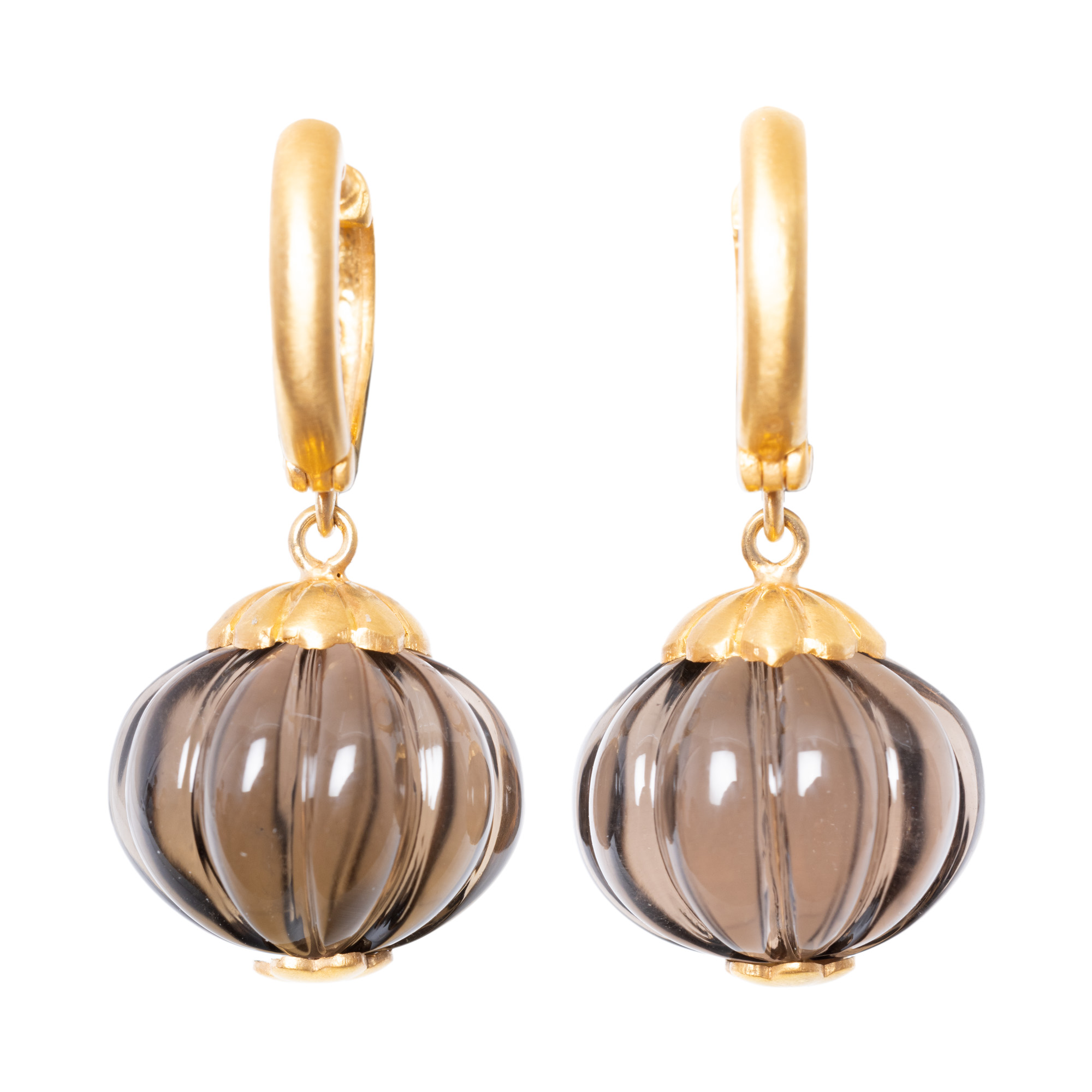 58. Pereche de cercei din aur, ornată cu beads din cuarț fumuriu