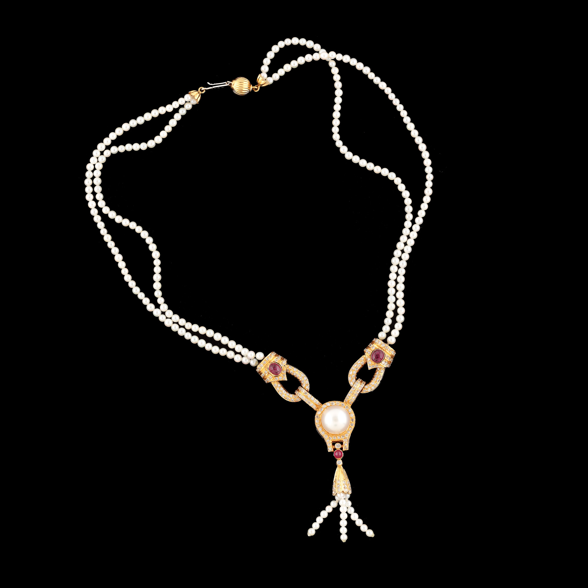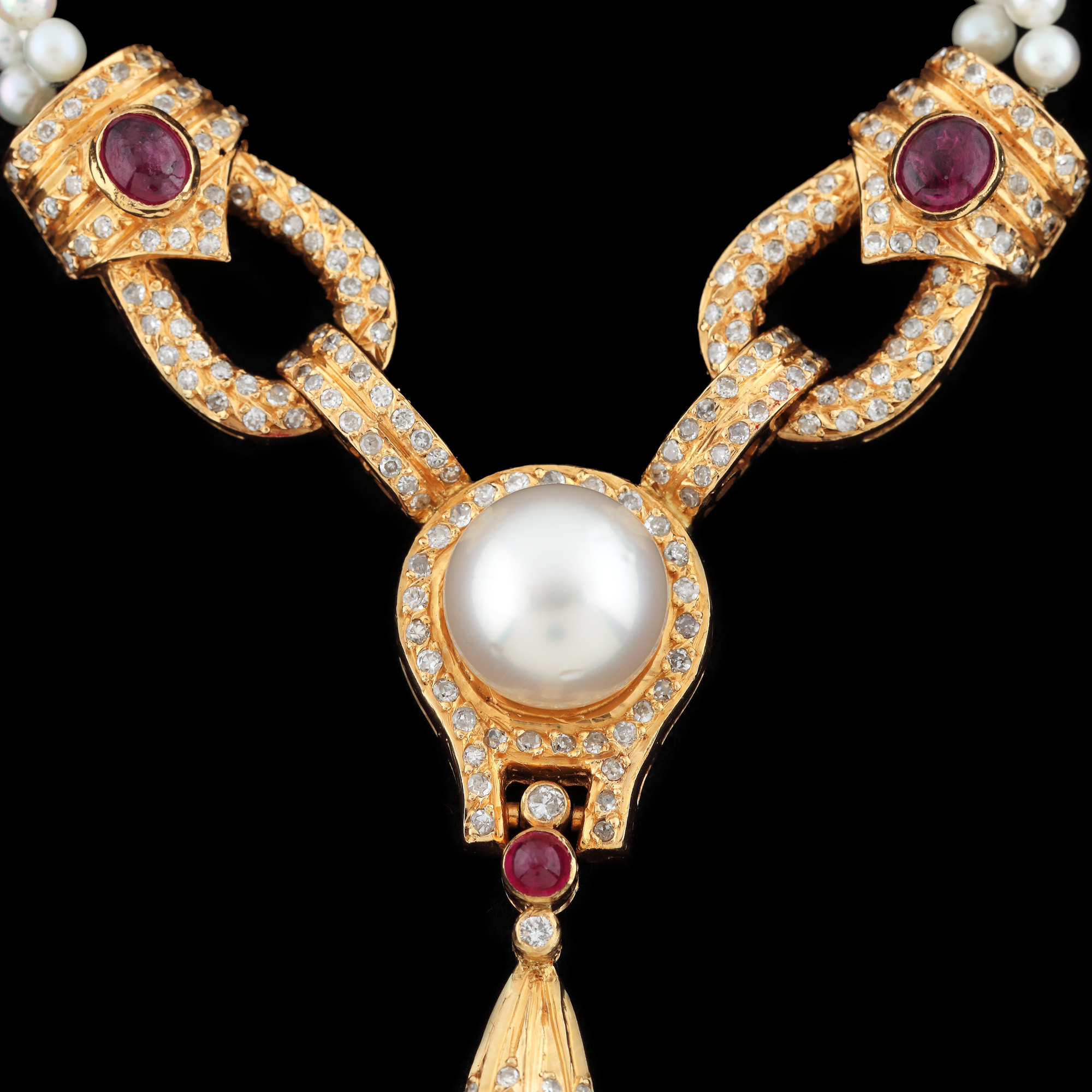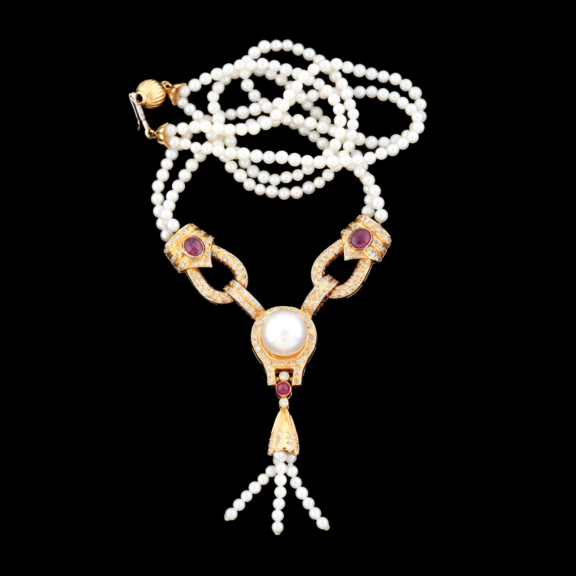 39. ”Arabian Nights ” - superb colier din perle și aur în două culori, pavat cu diamante și ornat cu rubine