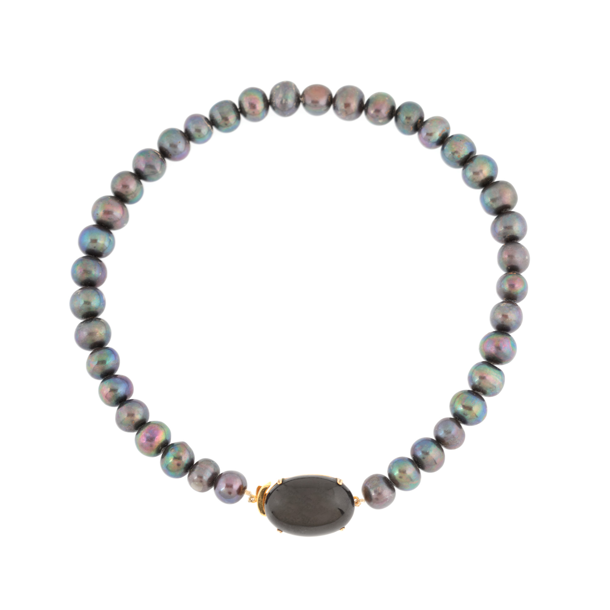 51. ”Black Star” - colier din perle și aur, cu un diopsid montat la închizătoare