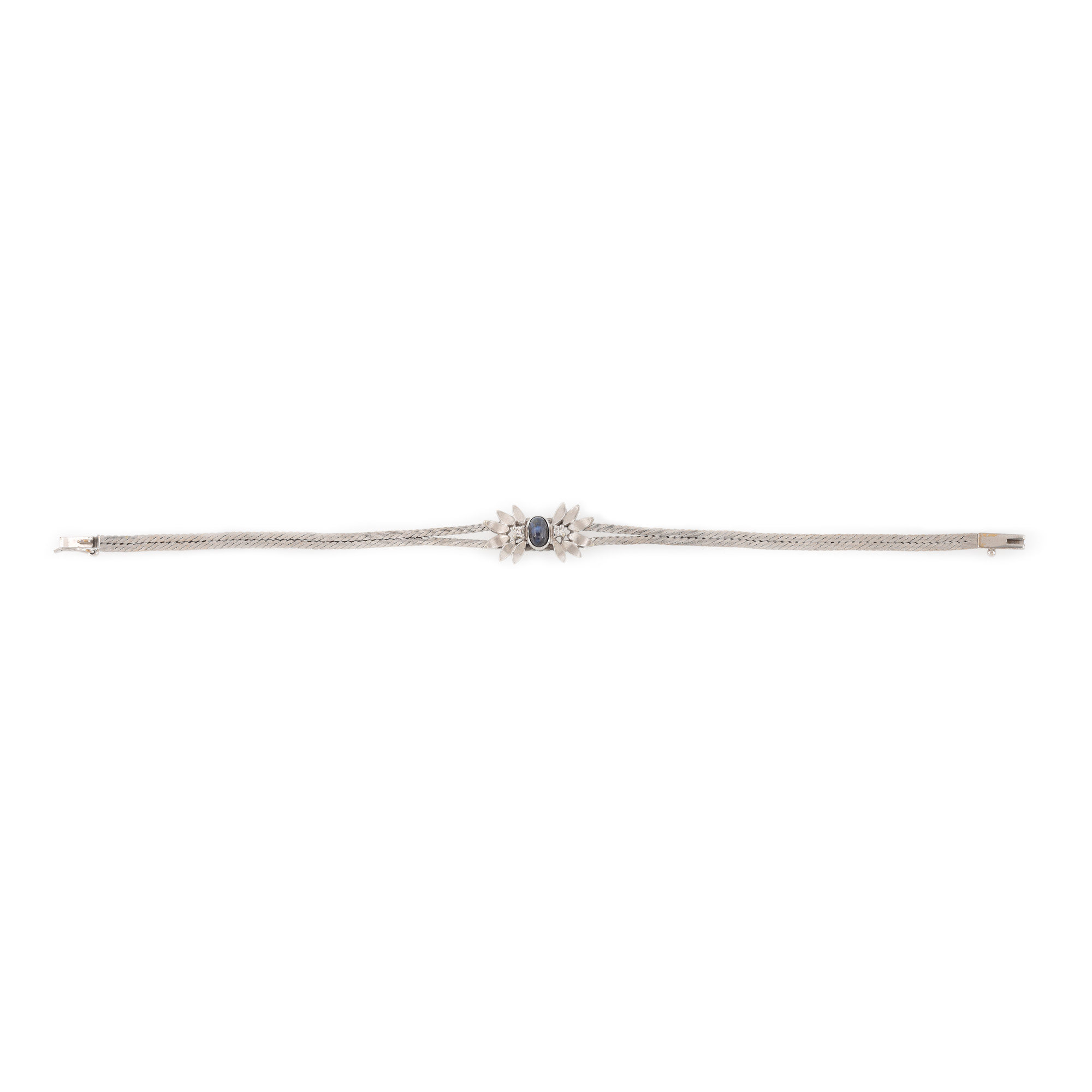 21. Brățară din aur alb, decorată cu pereche de diamante și un safir central