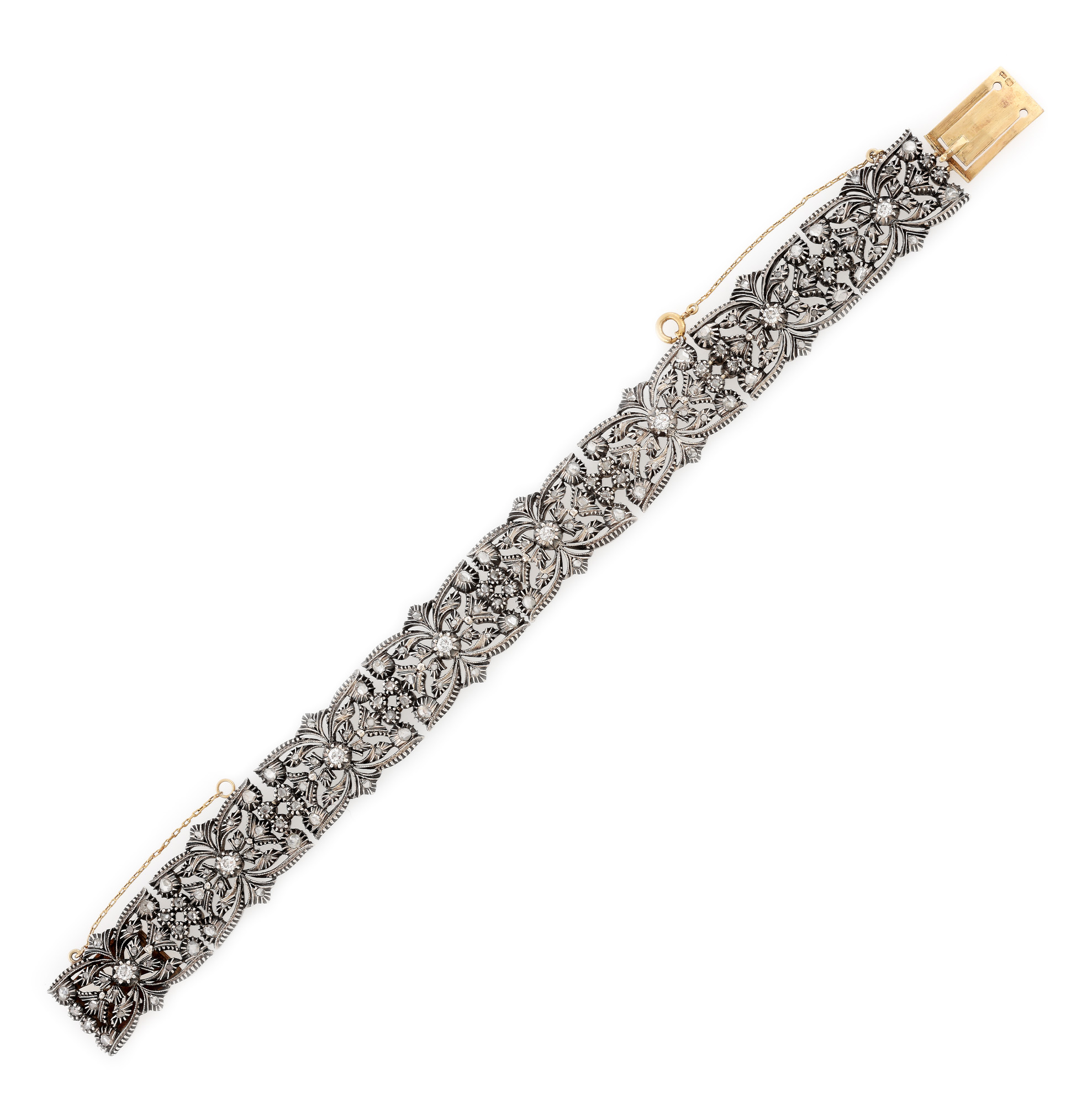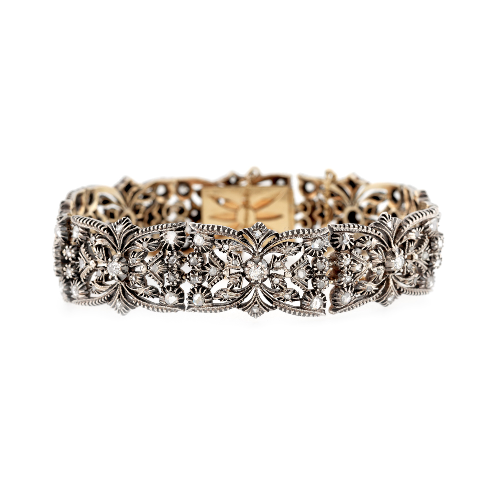 45. Brățară din aur și argint, în manieră Belle Époque, decorată cu diamante