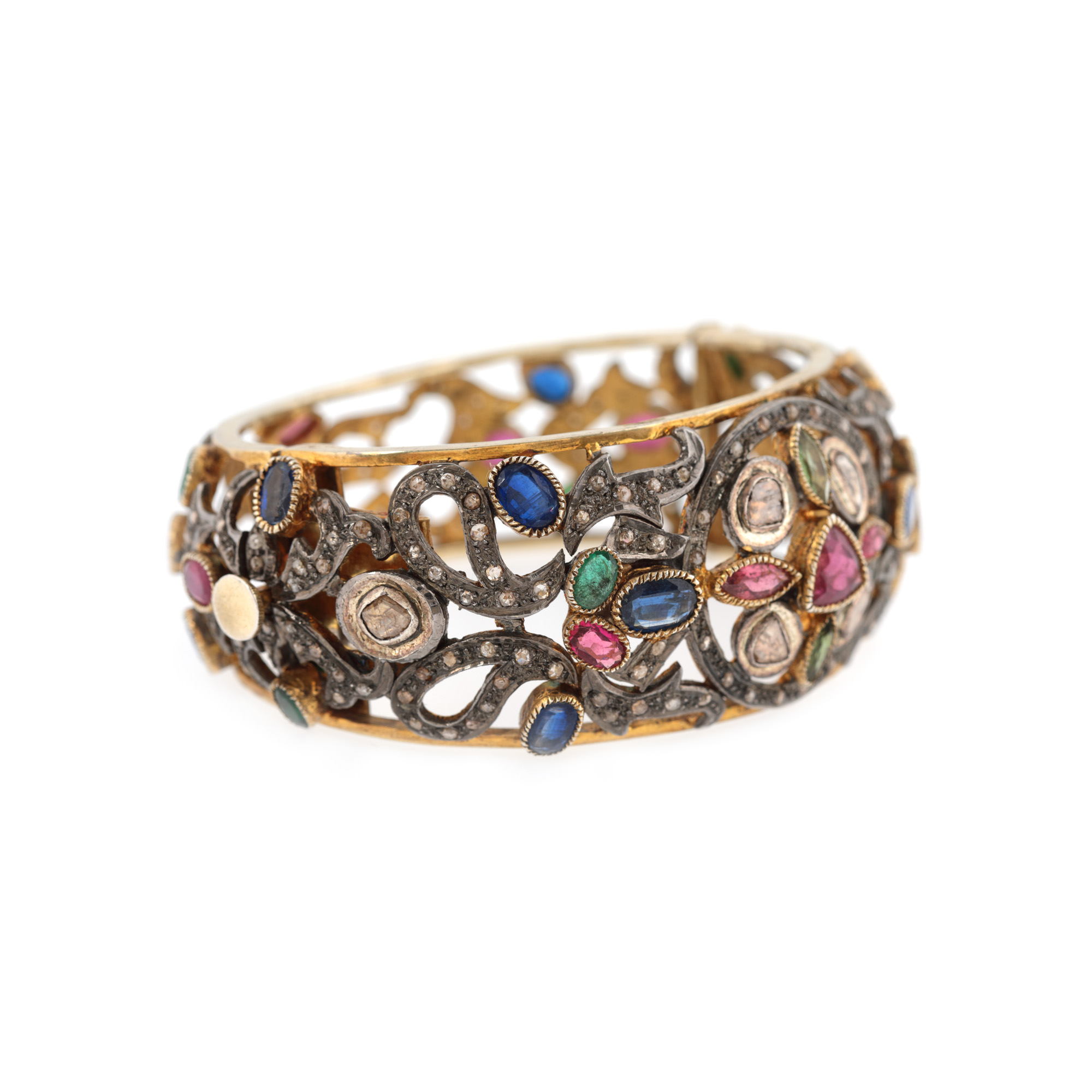 15. Brățară fixă din argint aurit, decorată cu mix de pietre prețioase