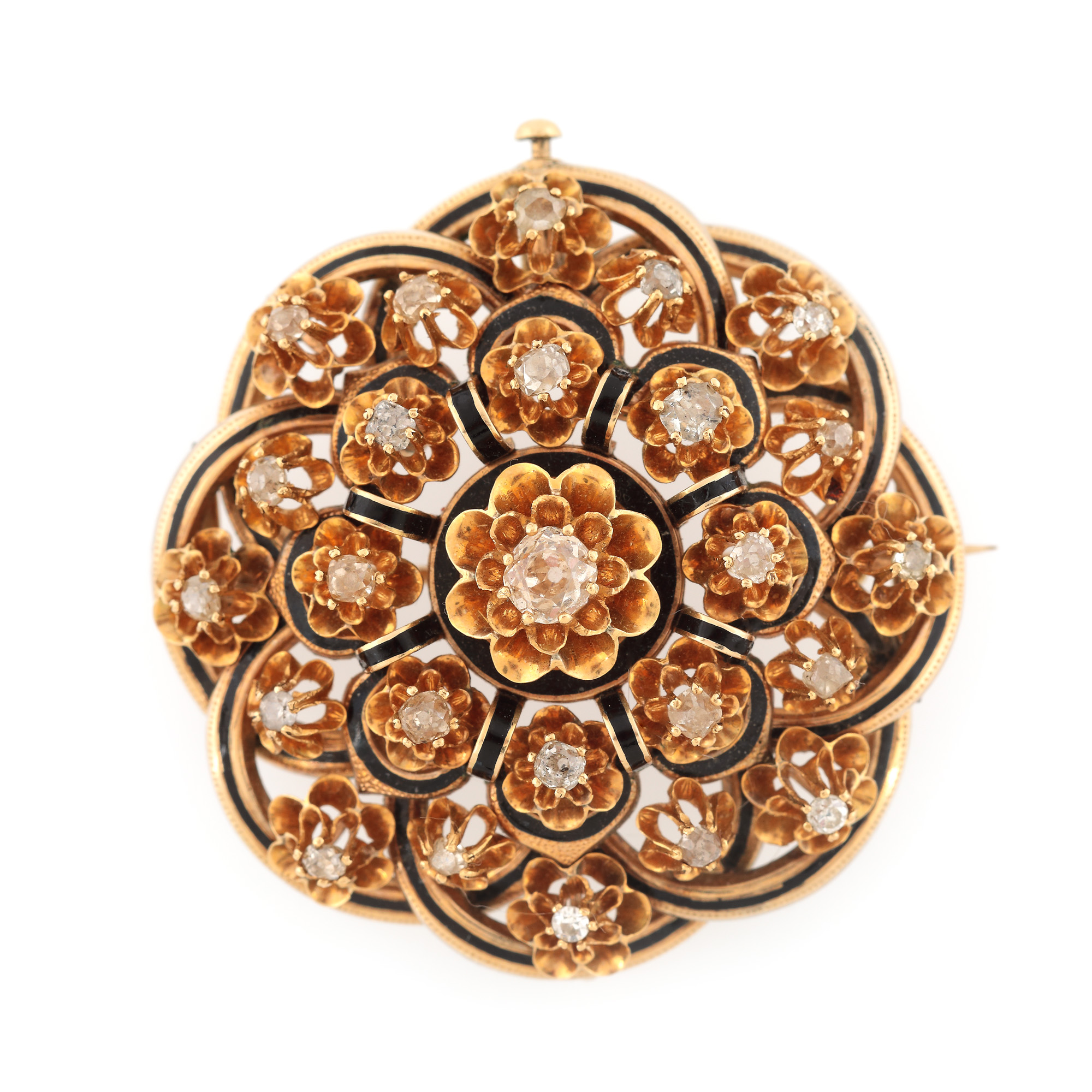 41. Broșă victoriană din aur, decorată cu diamante și email, cca. 1900