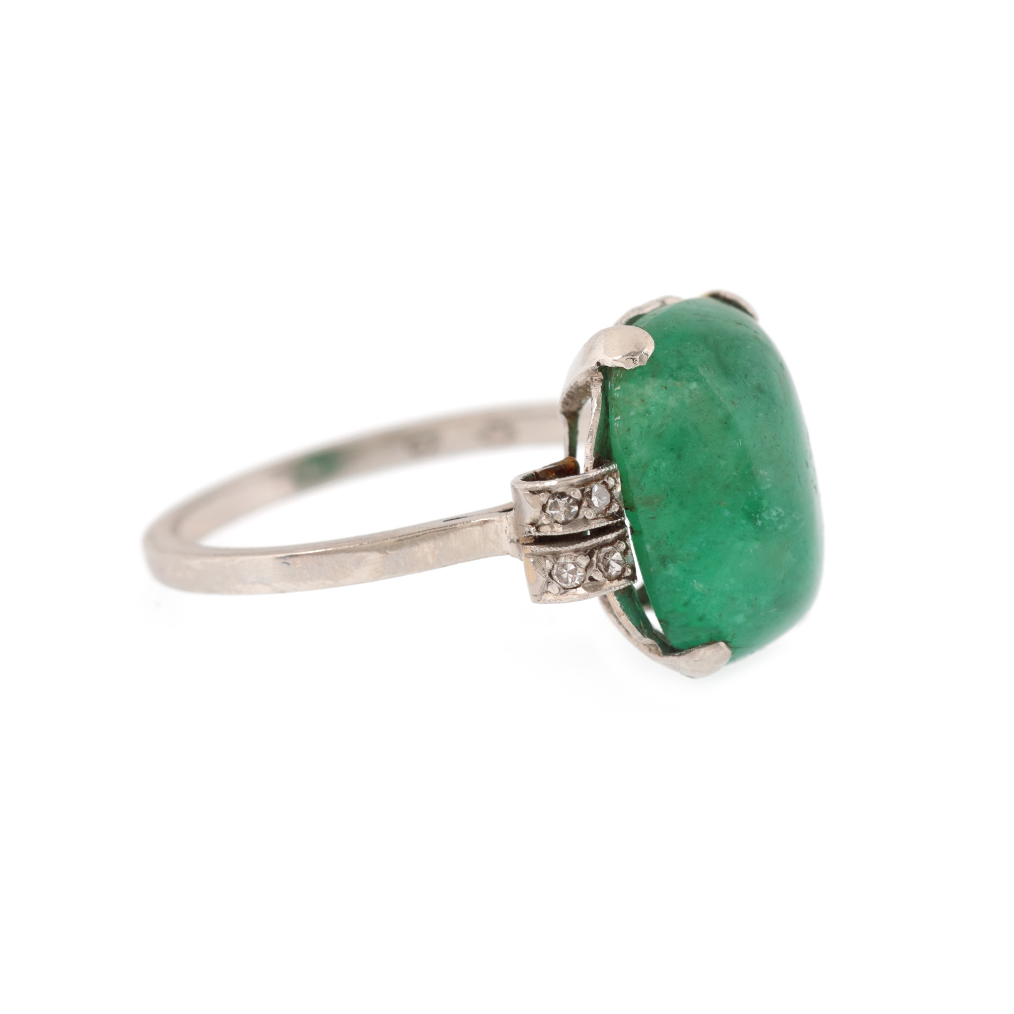 1 smarald rectangular caboșon, culoare verde, claritate moderately included, cca. 6 ct. și 8 diamante single cut, culoare I-J, claritate SI-I1, cca. 0,06 ct.
