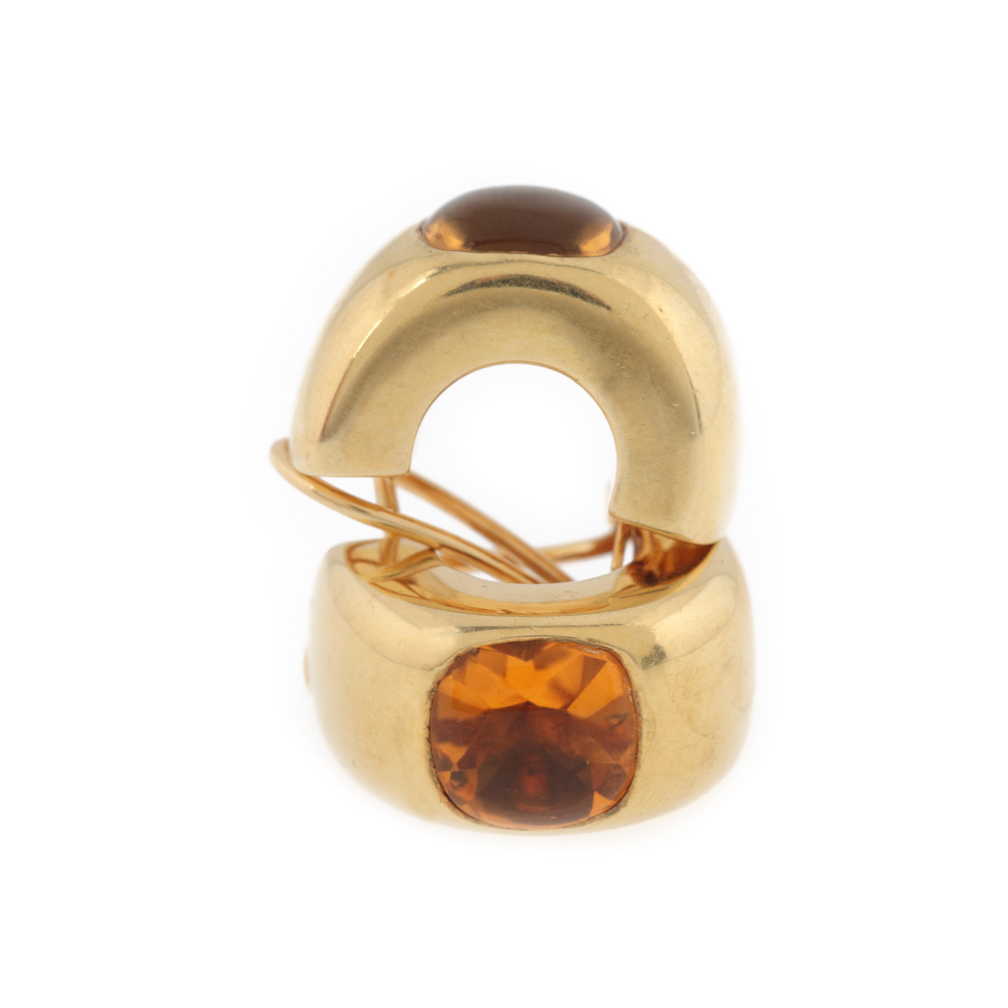 3. Pereche de cercei Art Deco din aur, ornată cu citrine