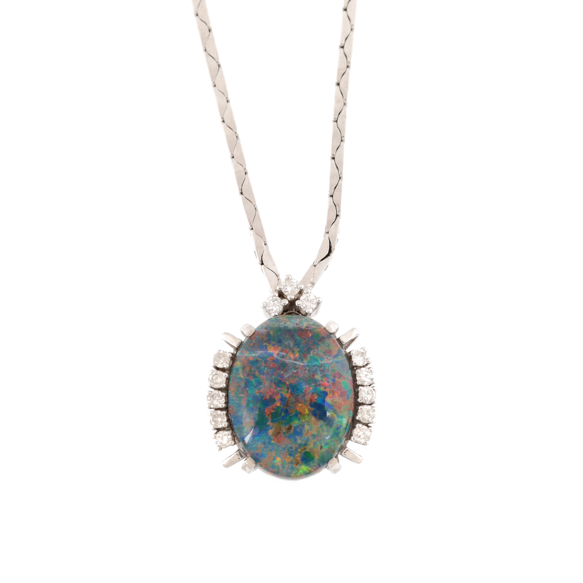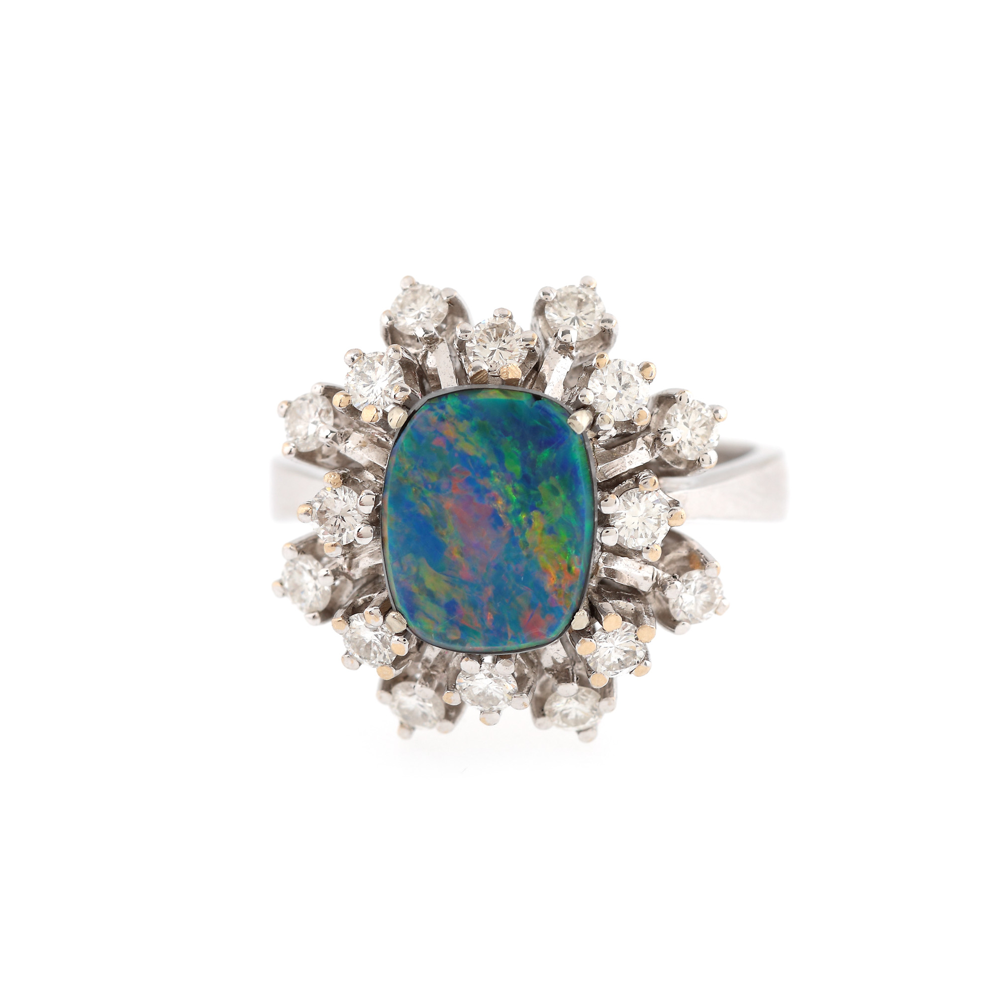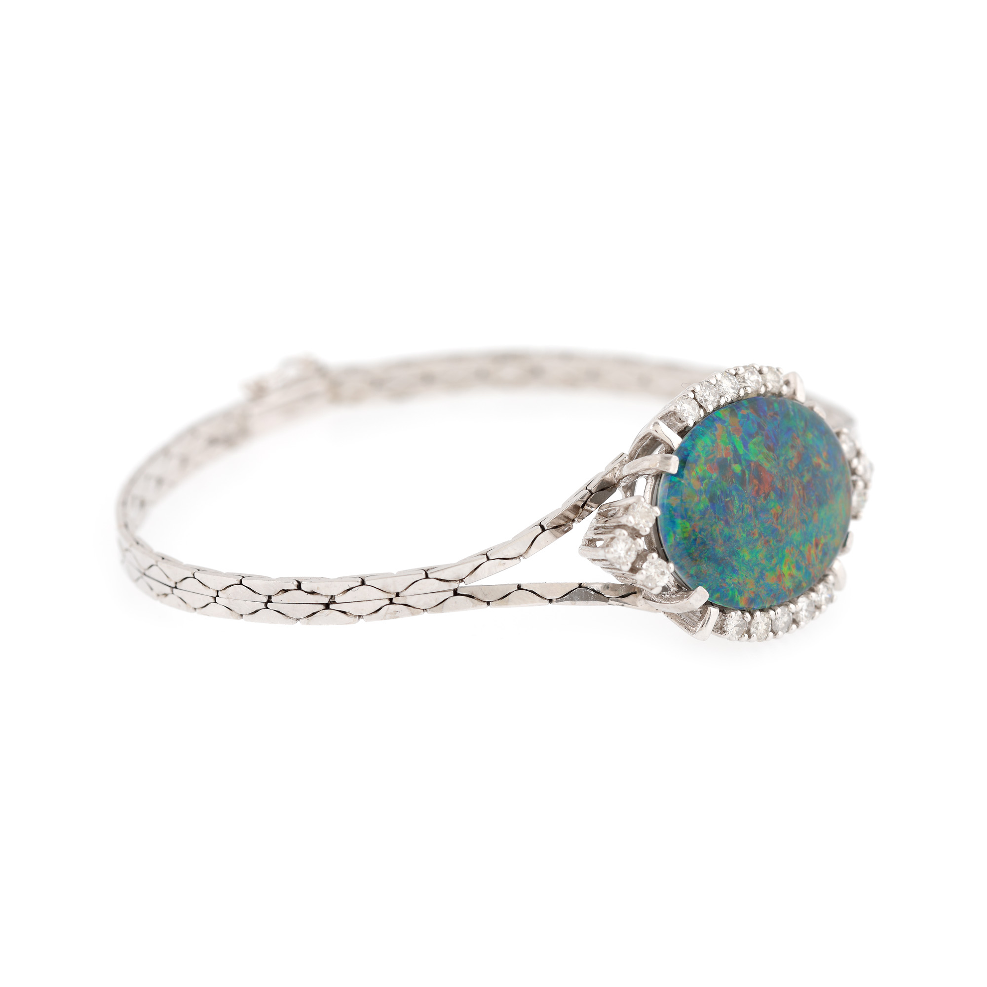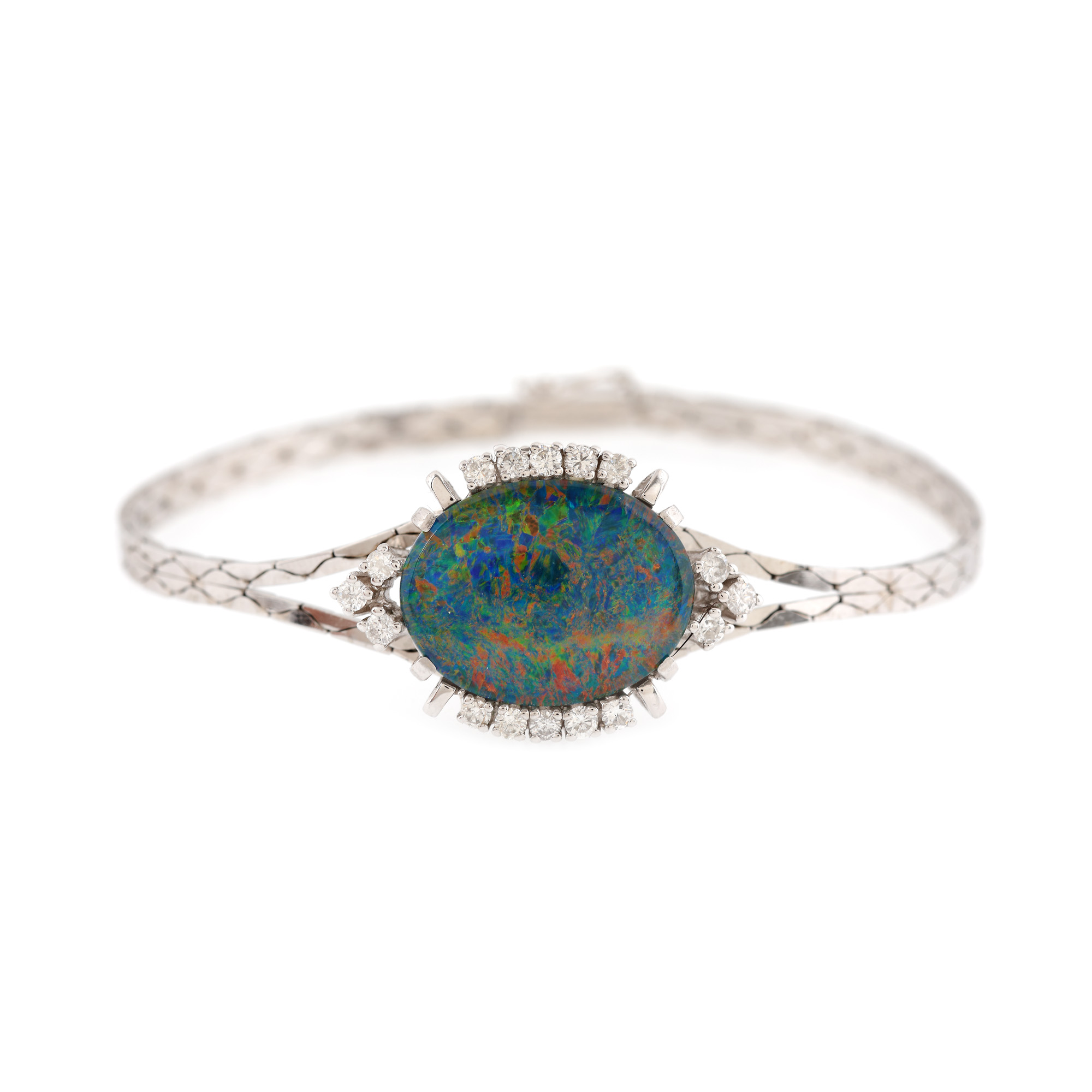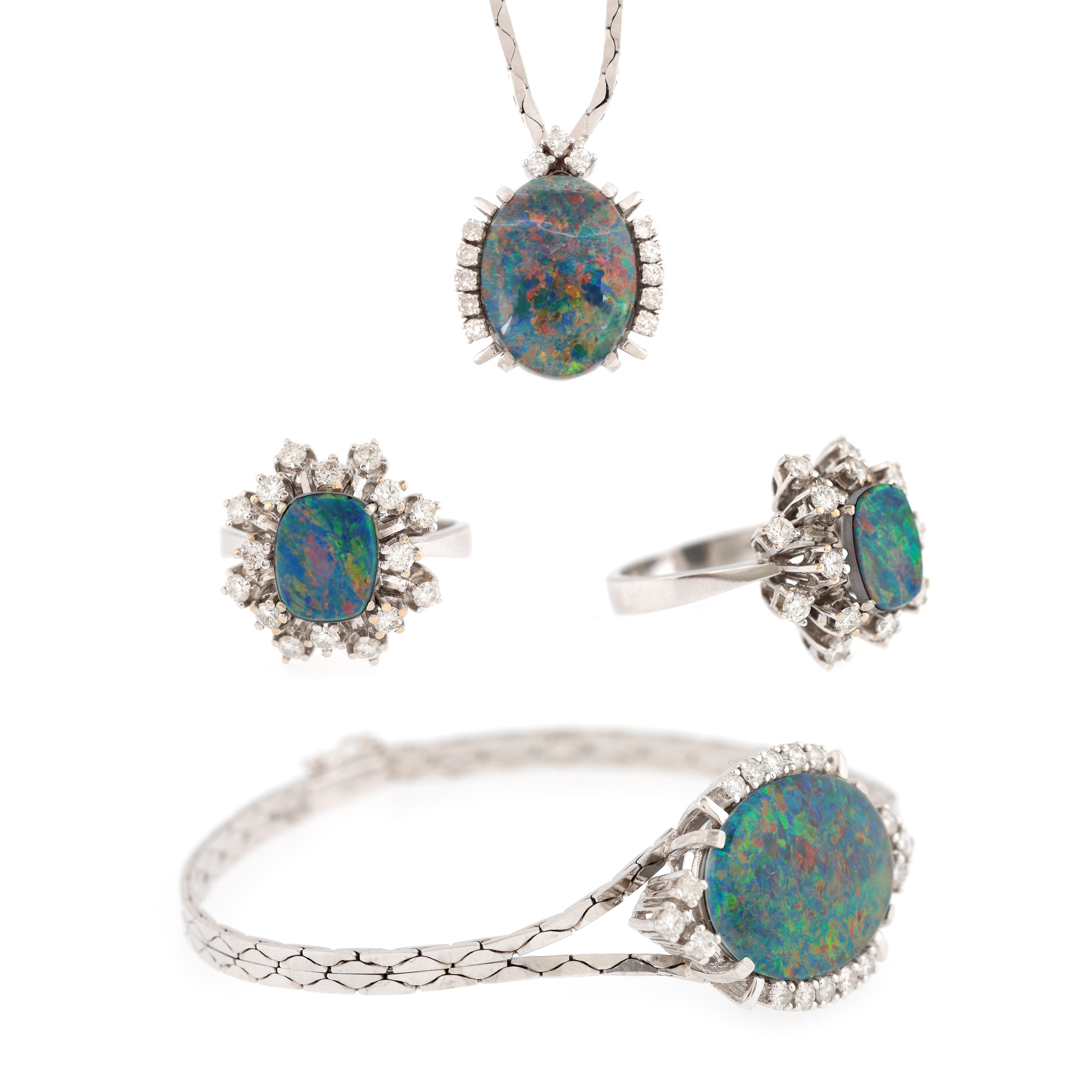 52. Set din aur alb, format din colier, brățară și inel, decorat cu opal triplet și diamante