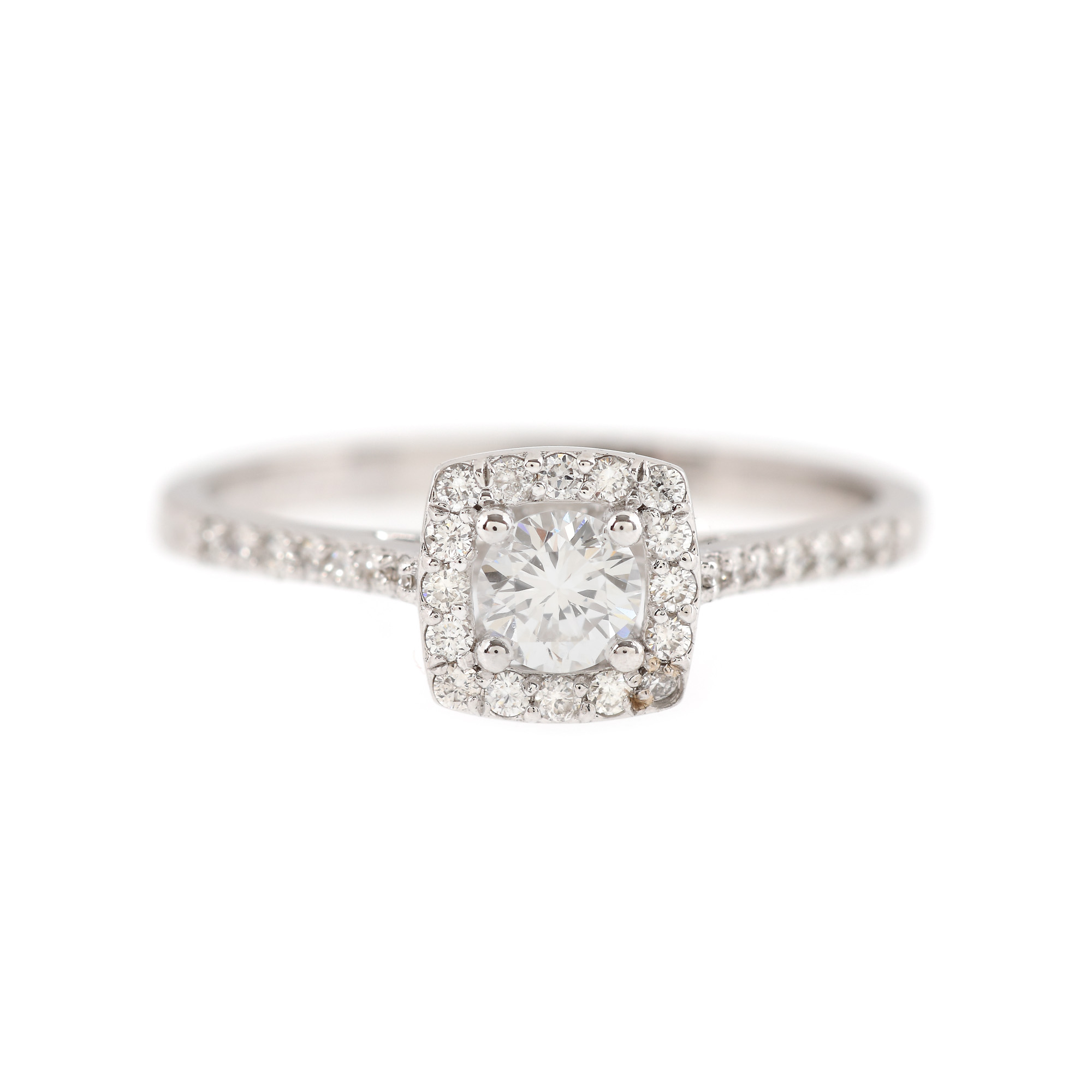 4 diamante rotunde briliant, culoare H-J, claritate VS-I1, cca. 1 ct. și 92 diamante rotunde briliant, culoare G-I, claritate VS-SI, cca. 0,72 ct.