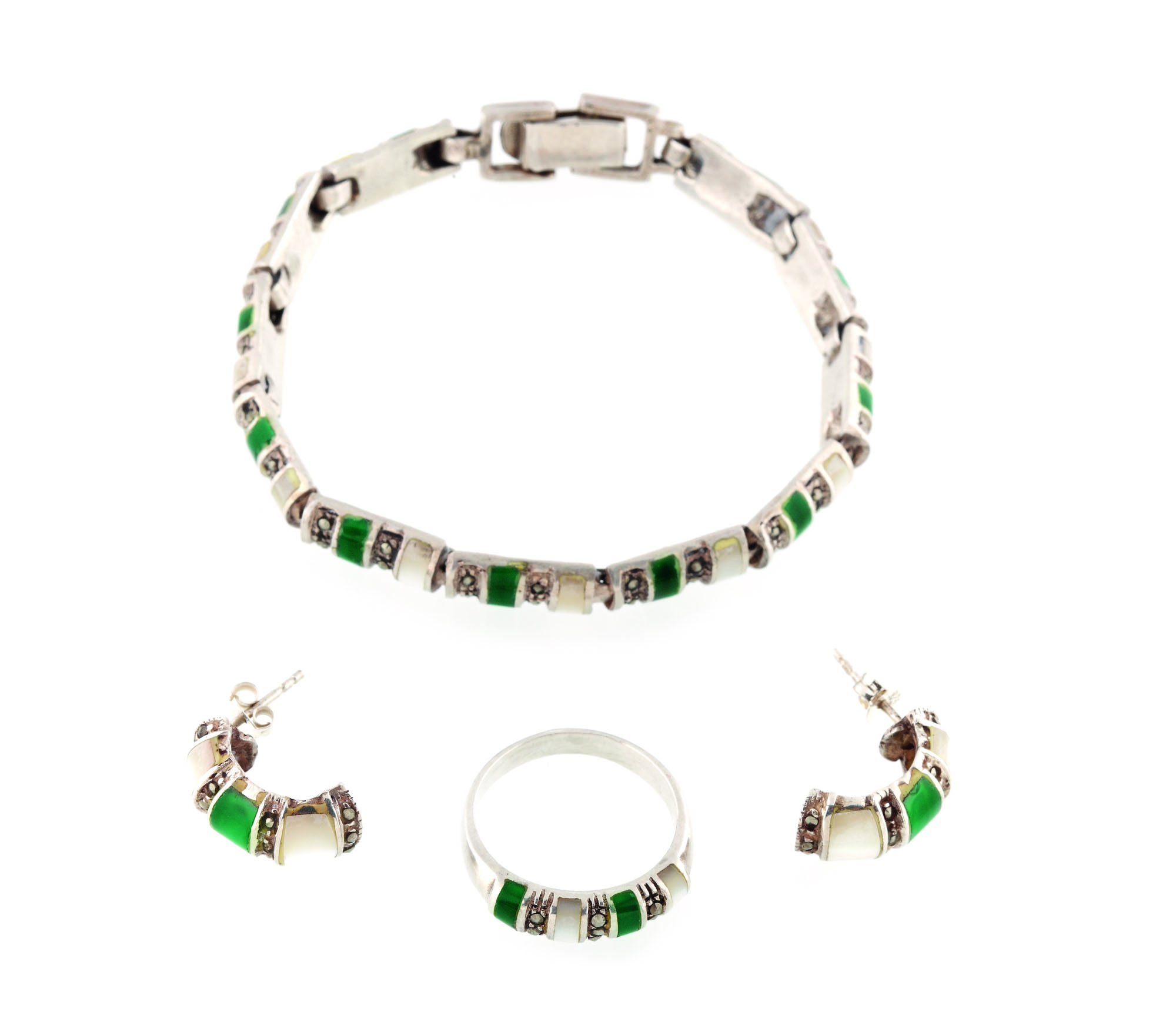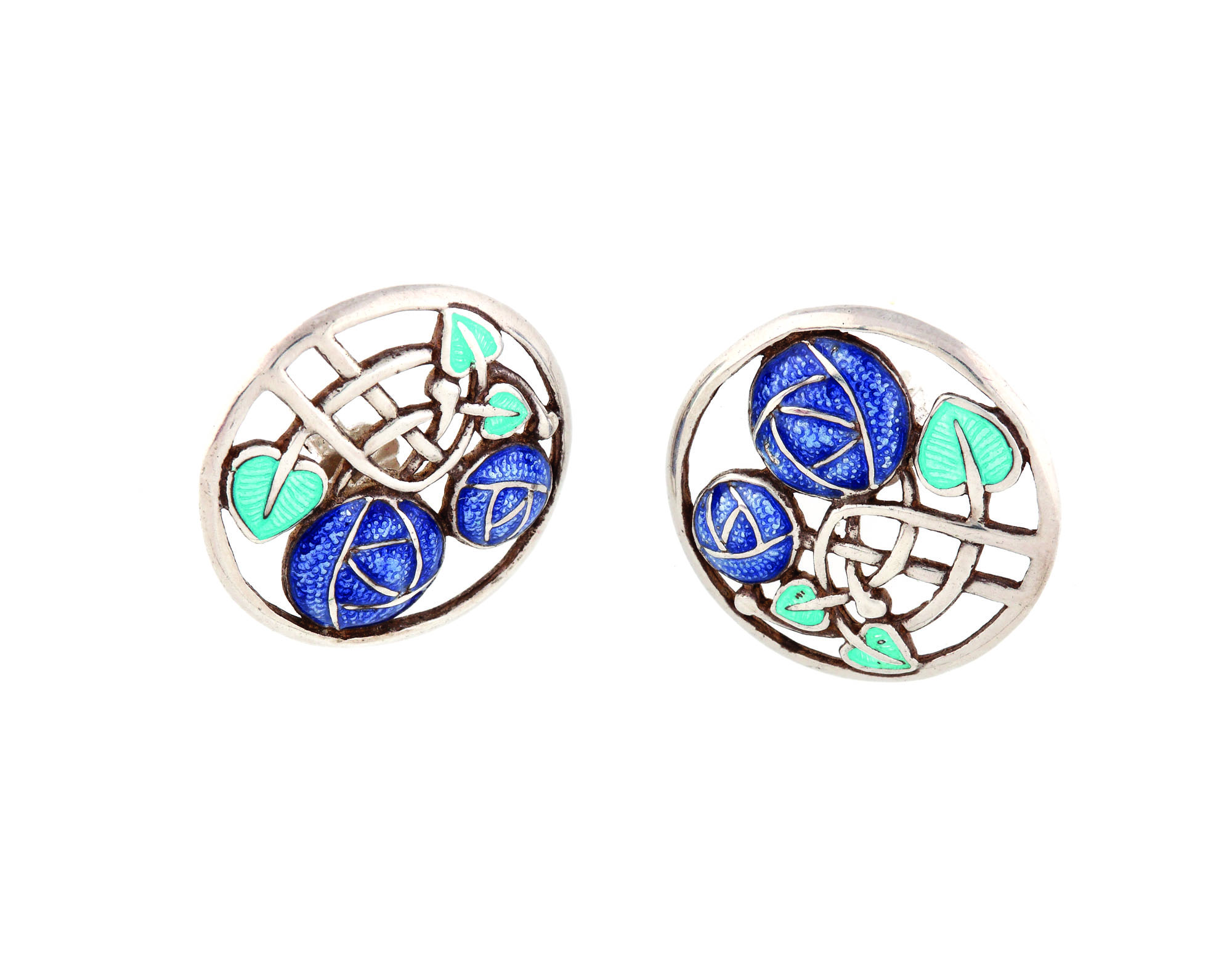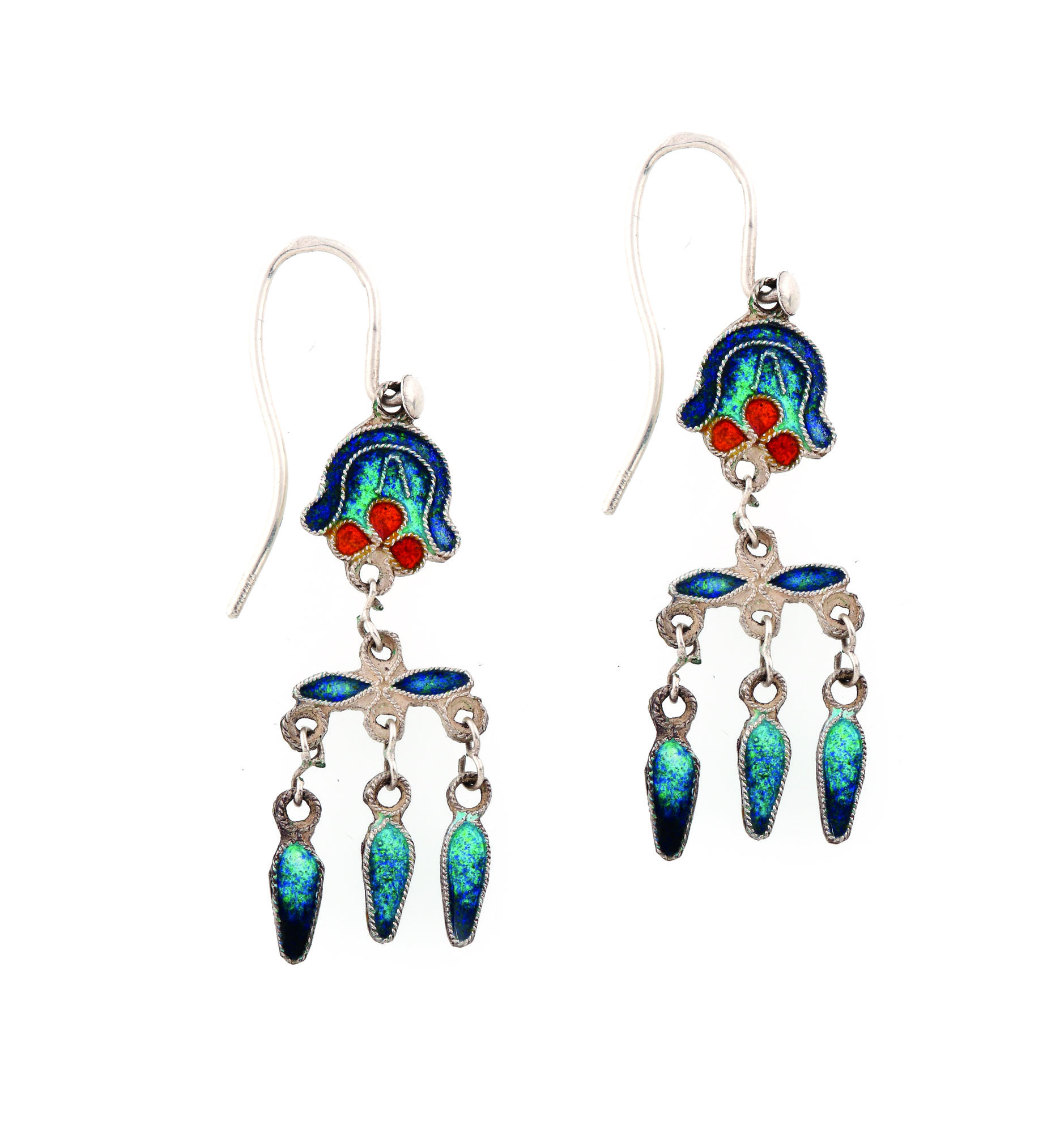 291. Pereche de cercei Jugendstil, din argint și email, în manieră Levinger & Bissinger, cca. 1900