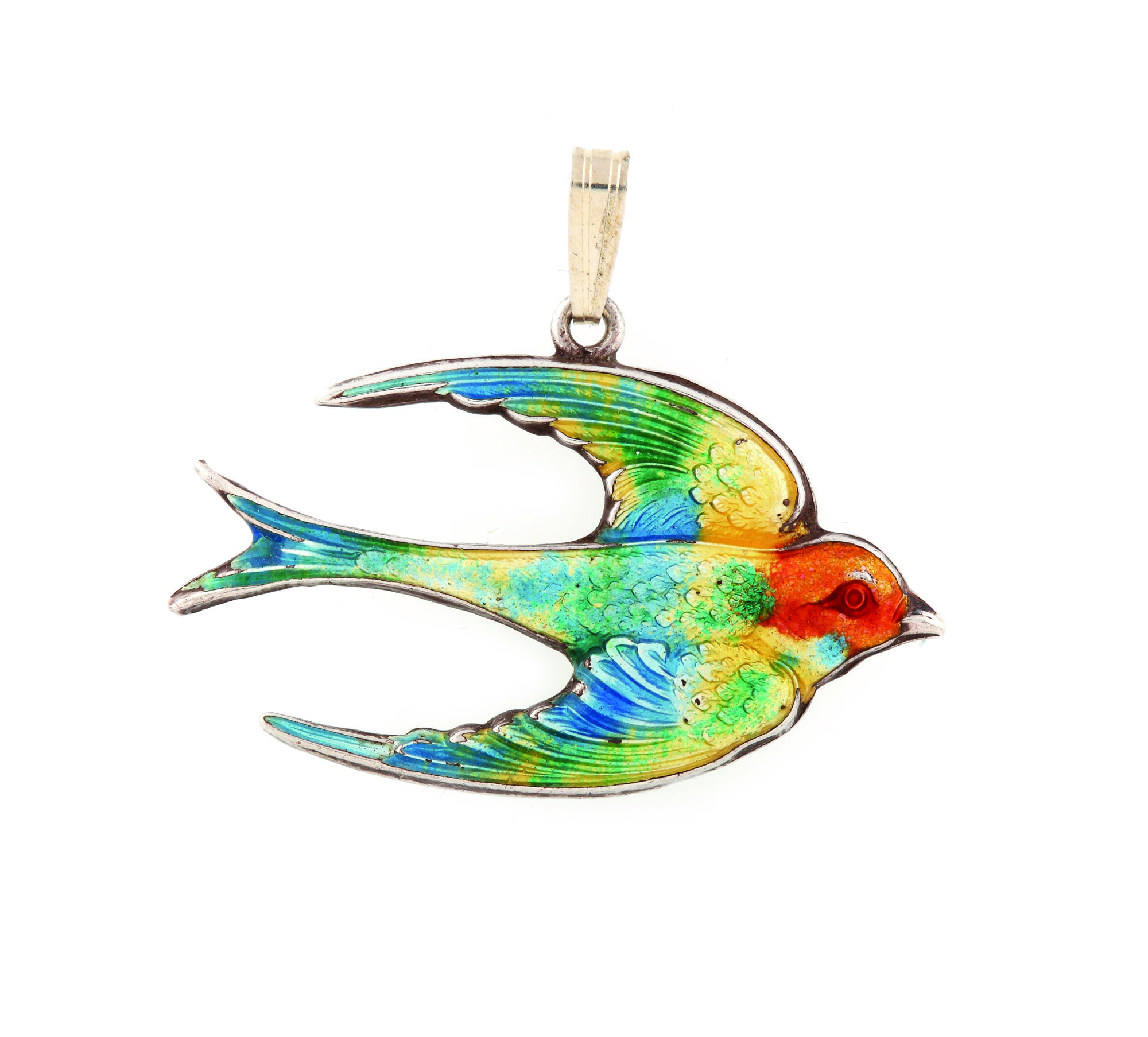 288. "Rândunica" - pandantiv Art Nouveau din argint, decorat cu email, cca. 1900