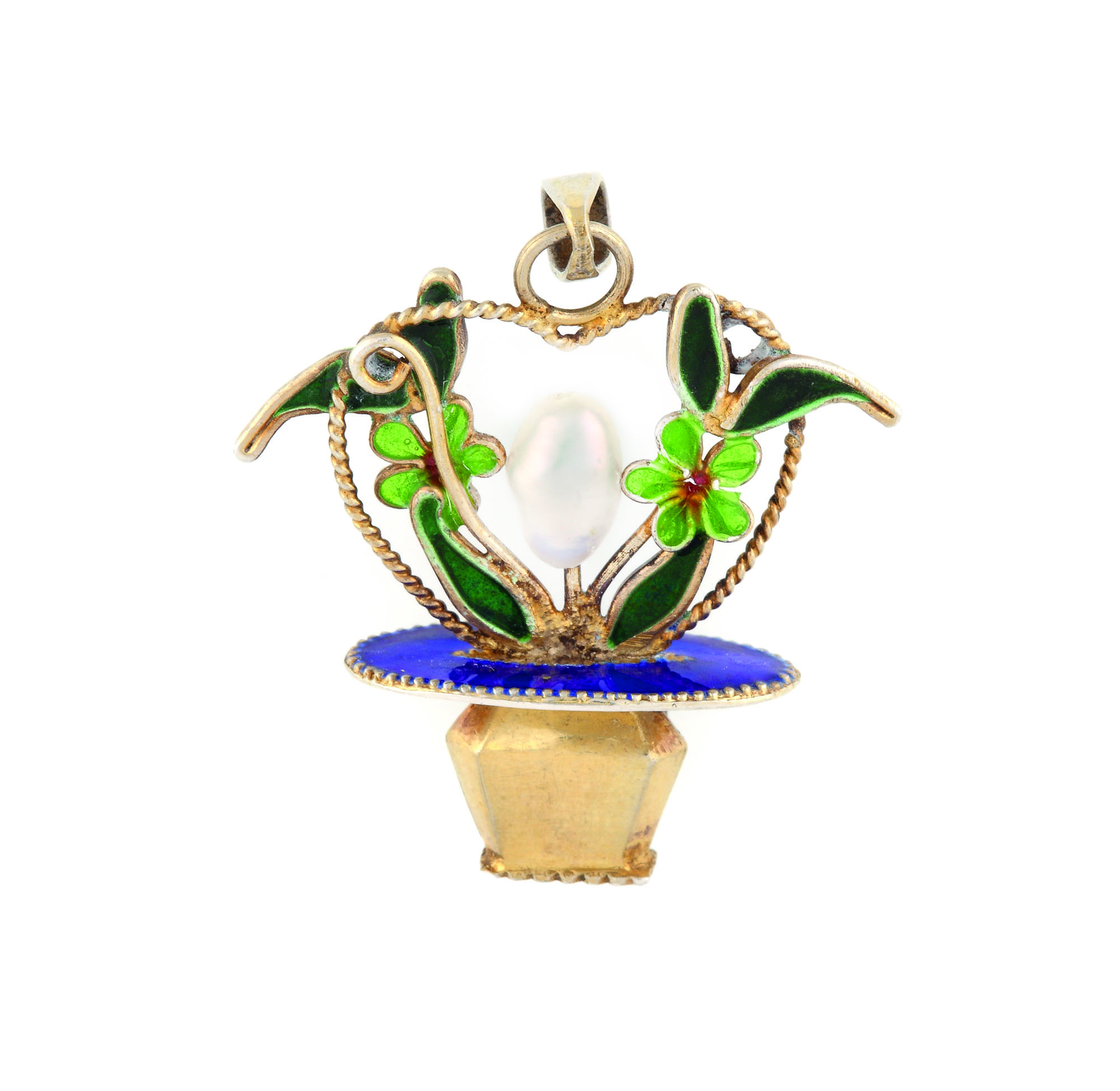 292. Pandantiv Art Nouveau din argint aurit, ornat cu email plique-à-jour și perlă, cca. 1910