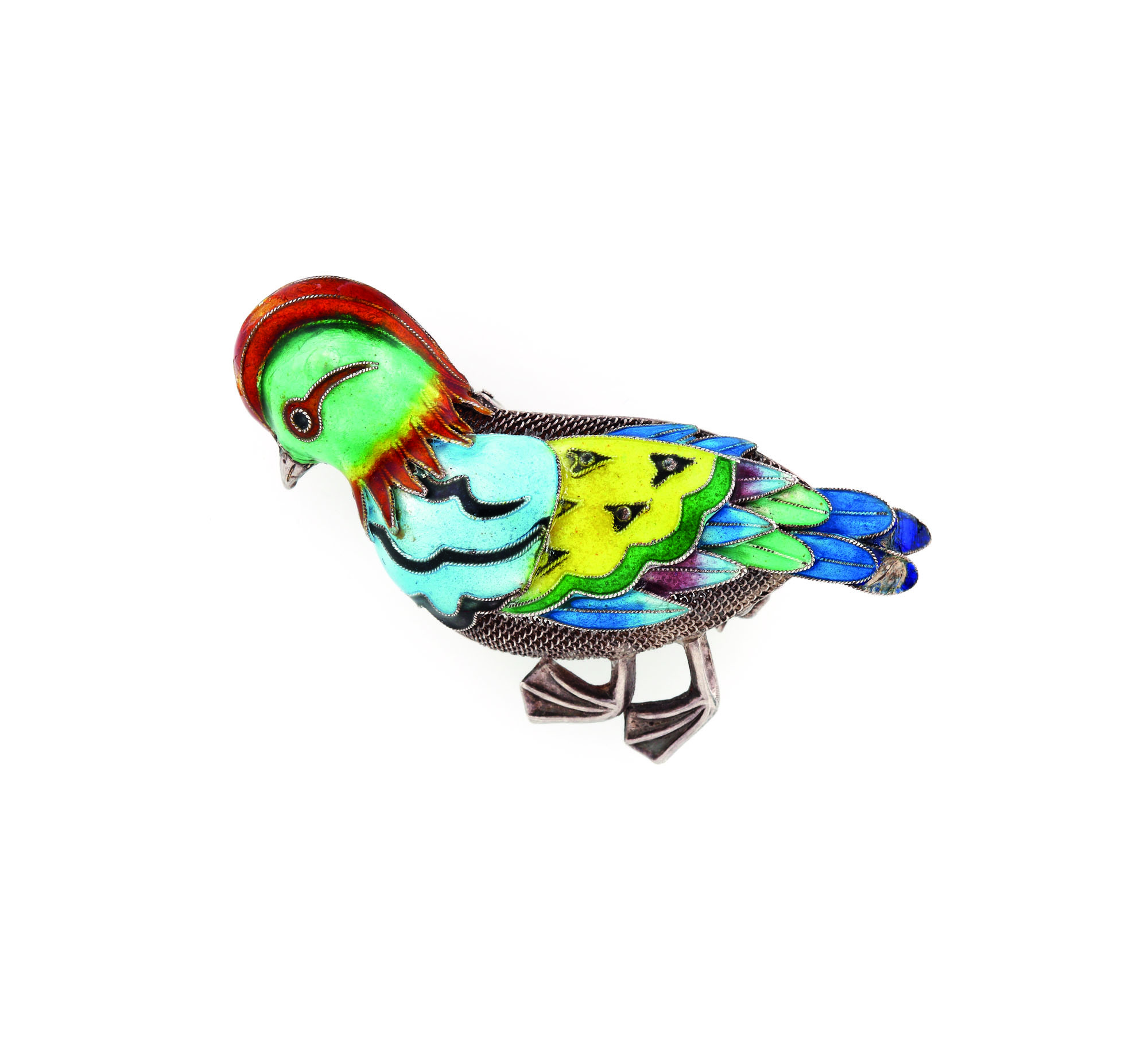 293. Broșă din argint în formă de pasăre, decorată cu email [cca. 1970]