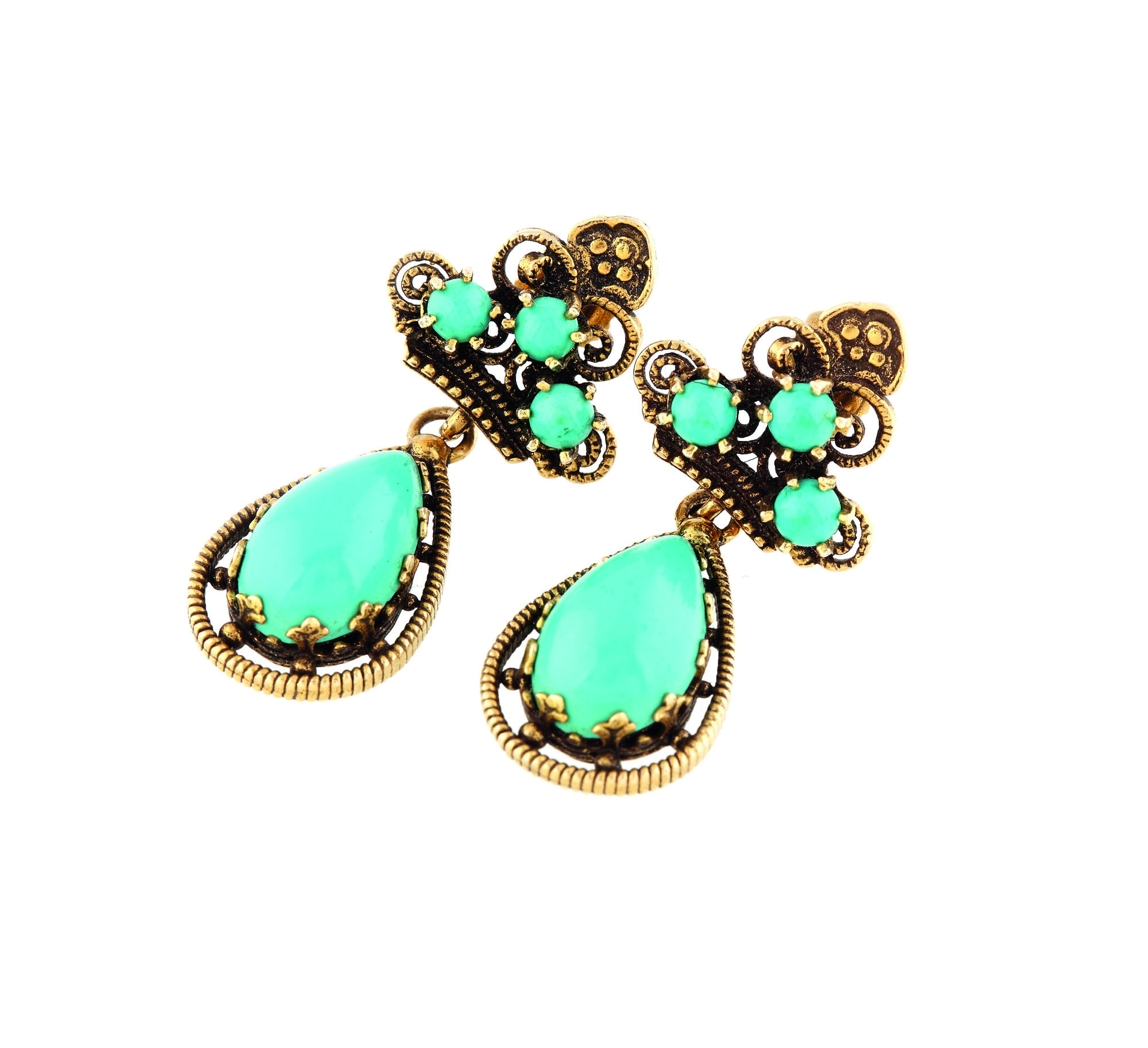 294. Pereche de cercei din aur, decorată cu turcoaze