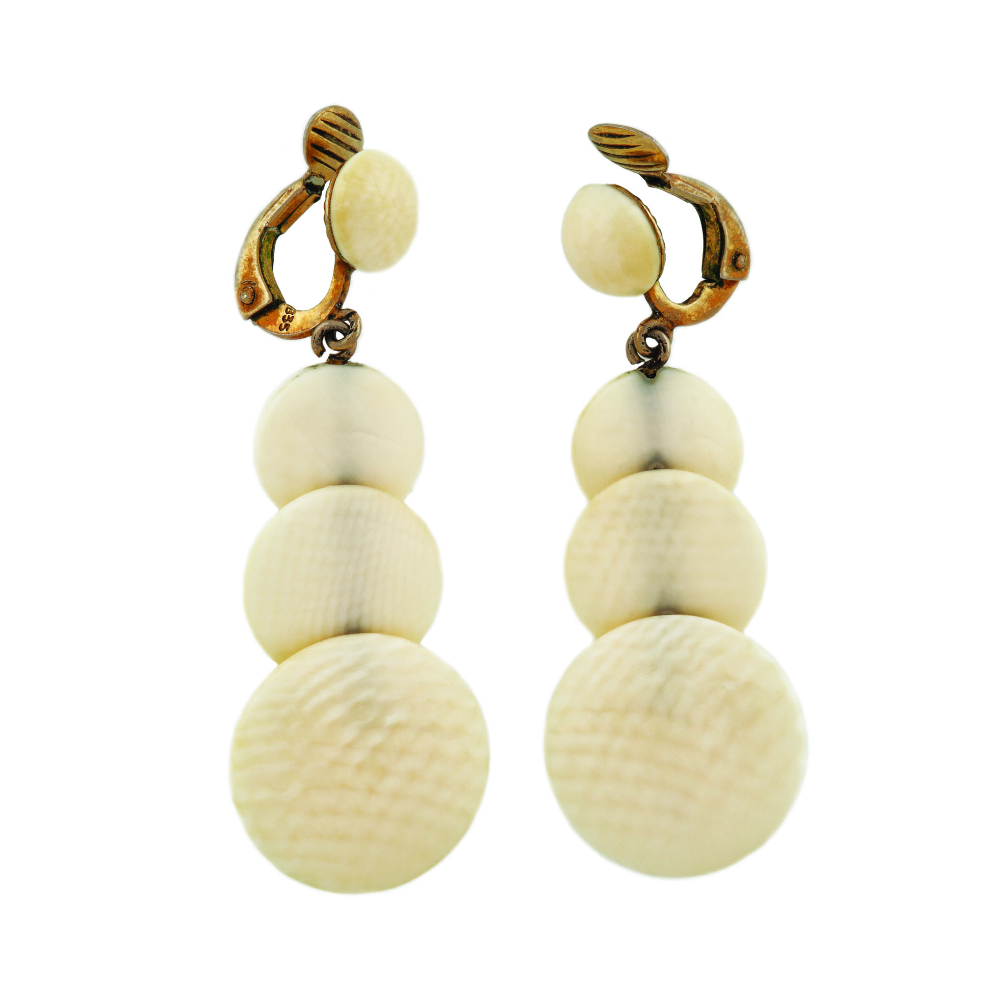 295. Pereche de cercei Art Deco, din argint aurit şi fildeş, cca. 1930