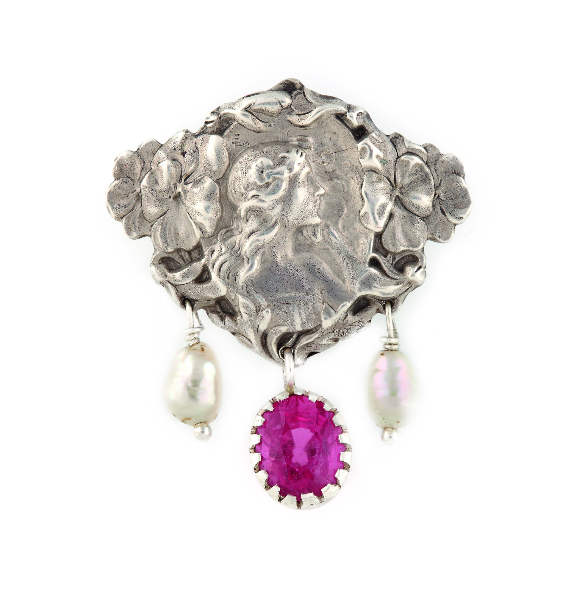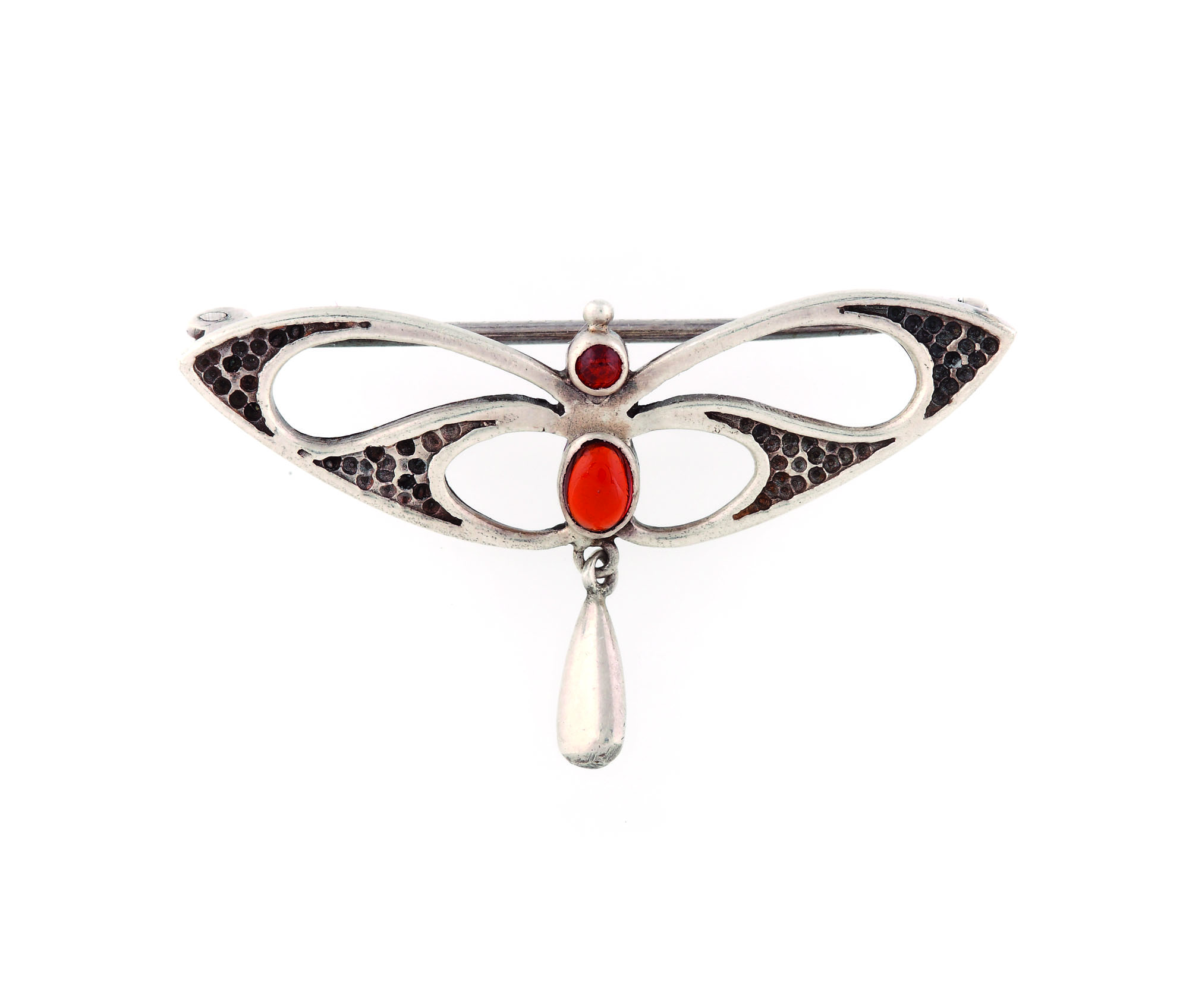 298. Broşă Jugendstil, din argint, ornată cu granate