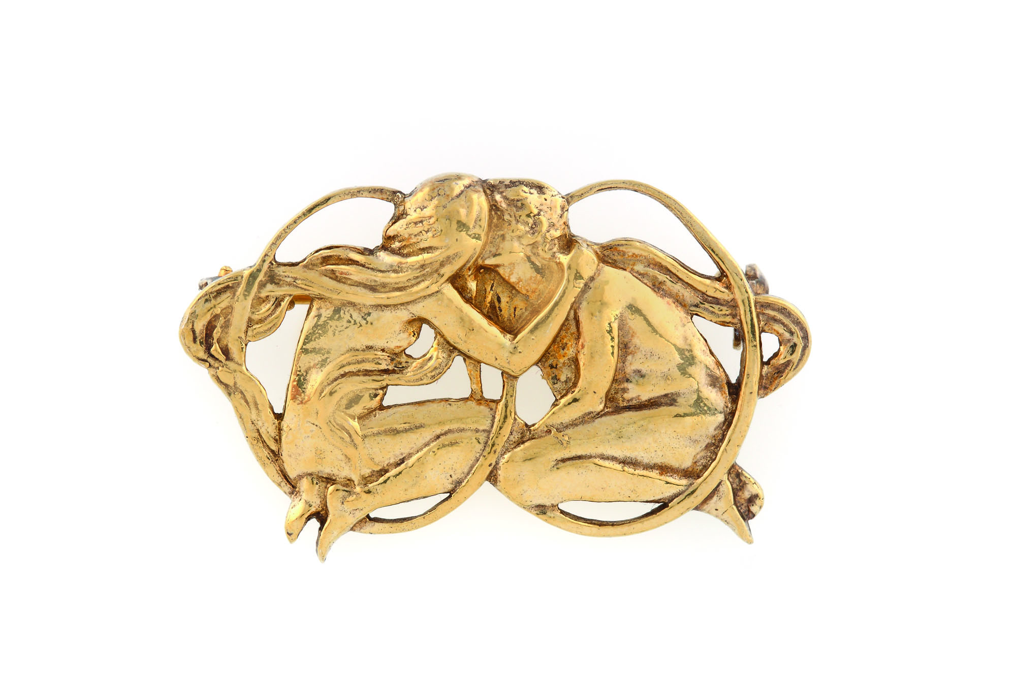 299. "The Kiss" - broşă Art Nouveau din argint aurit, cca. 1900