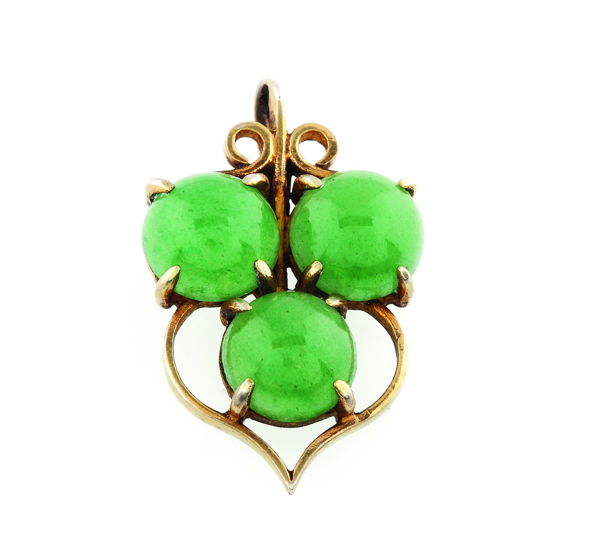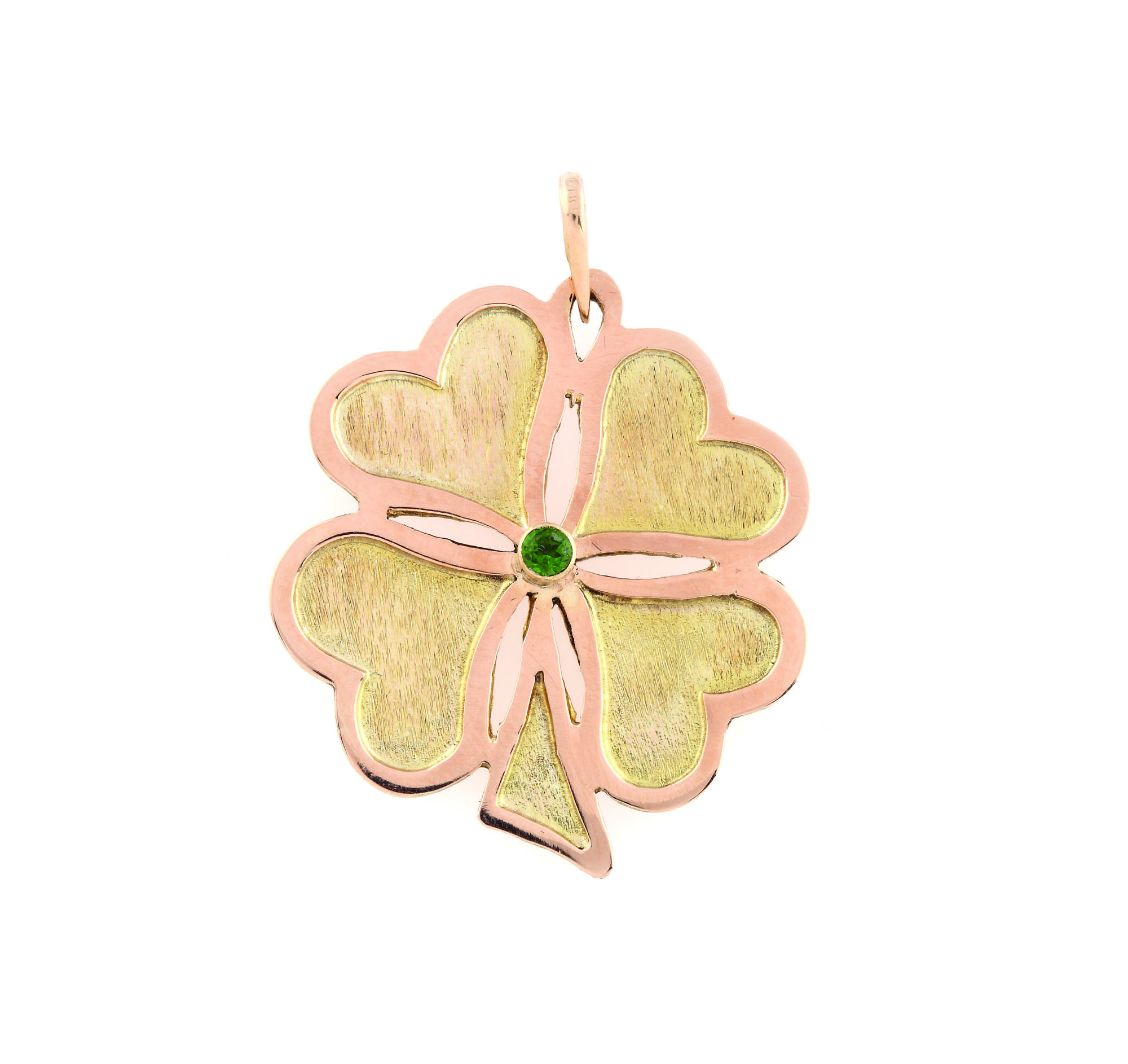 306. "Trifoi" - pandantiv Art Nouveau din aur roşu și aur galben, decorat cu tsavorit, cca. 1900