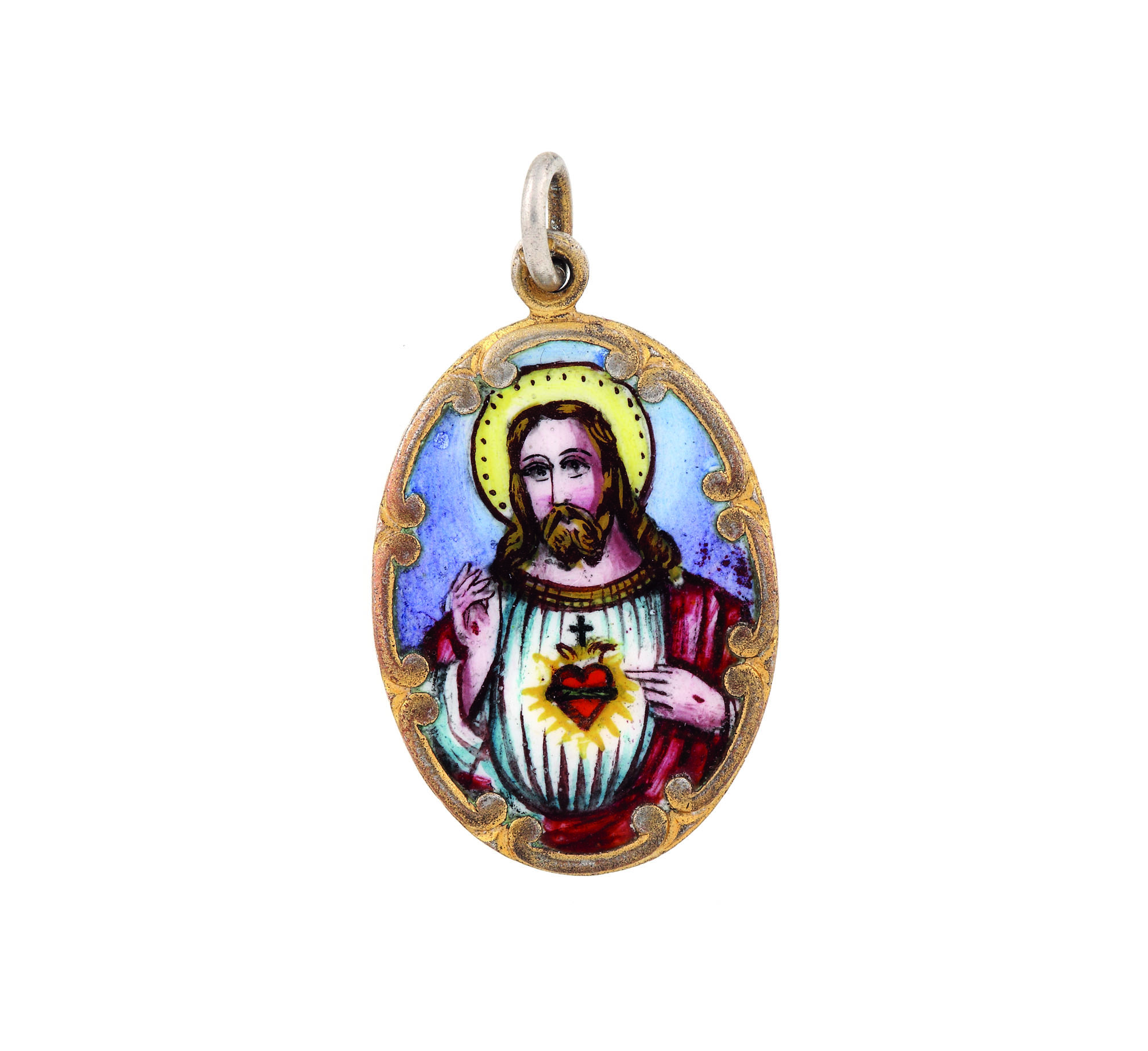 301. Pandantiv religios din argint aurit și email, cca. 1900