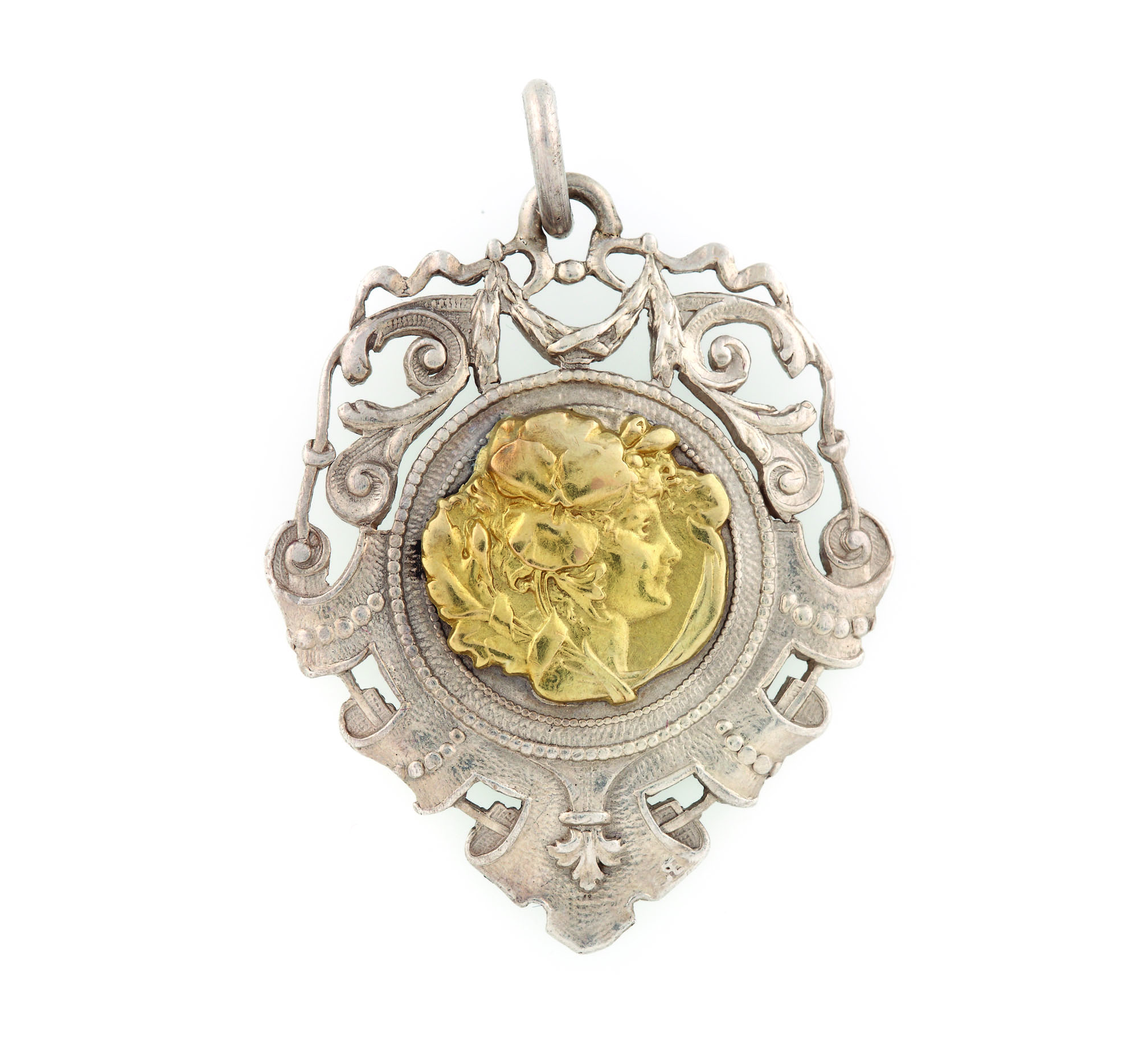308. Pandantiv Belle Epoque din aur şi argint, cca. 1900, piesă de autor, design Jules Wiese