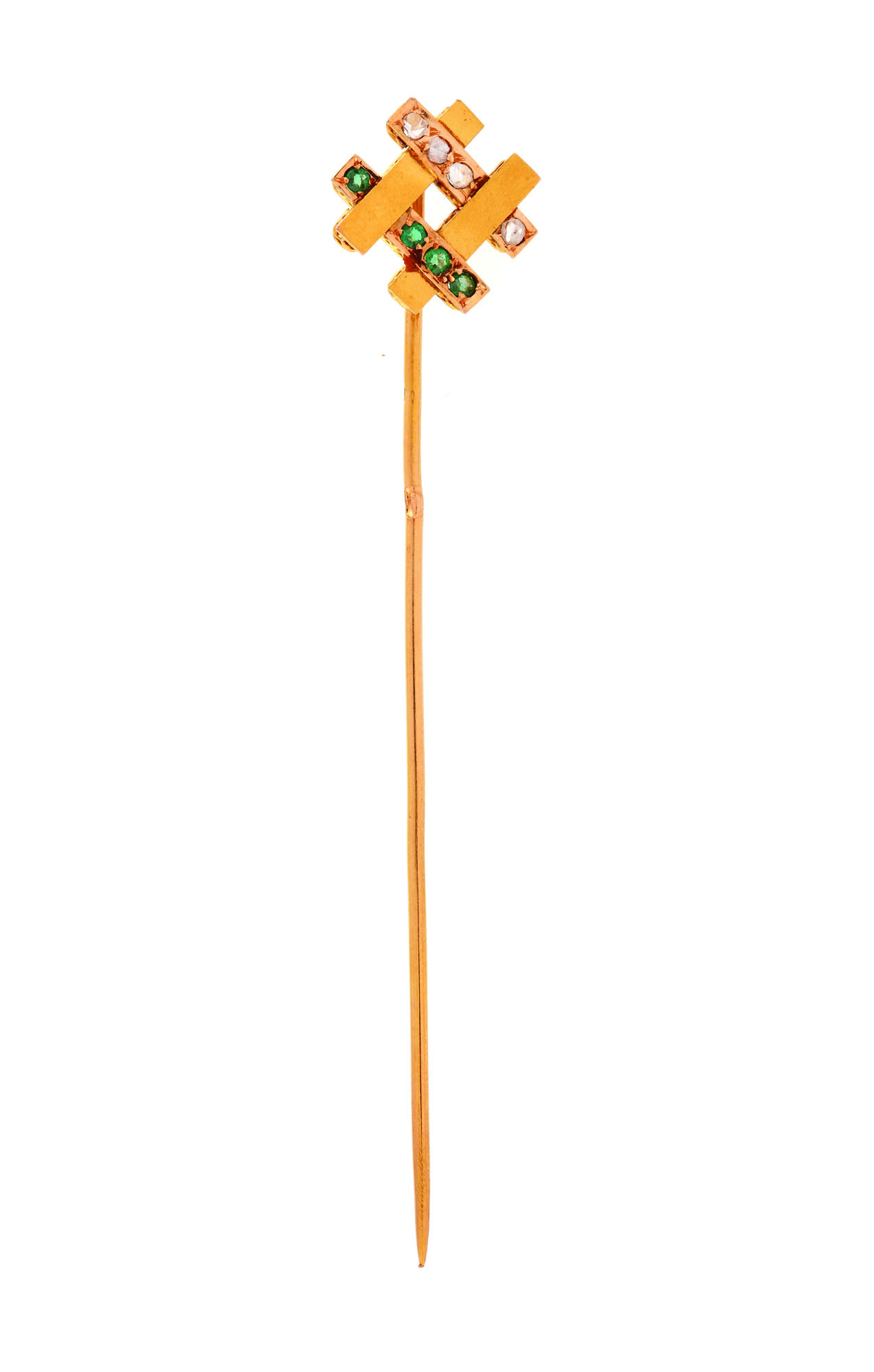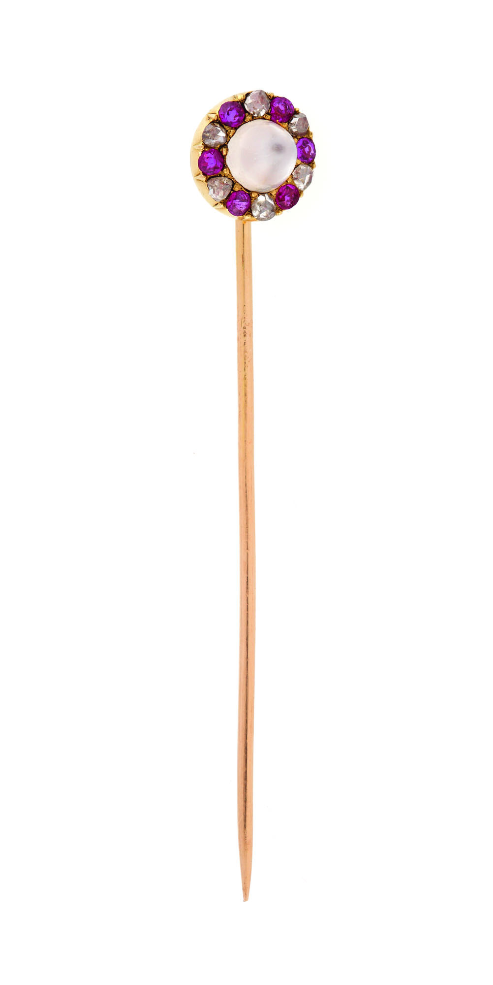 311. Pin din aur, decorat cu piatra lunii, diamante şi rubine, pentru cravată, cca. 1880