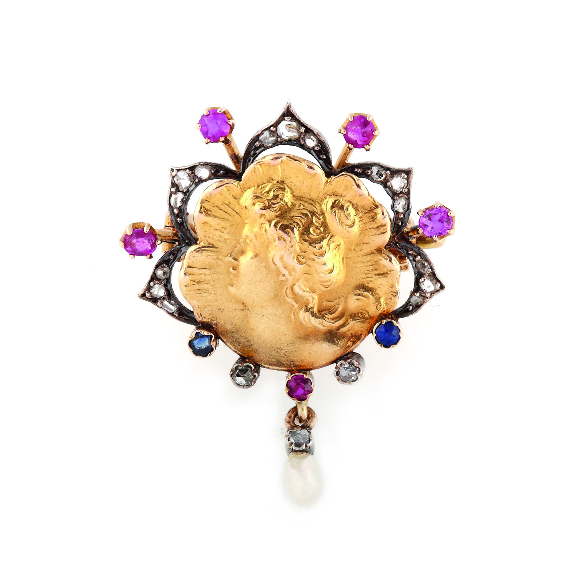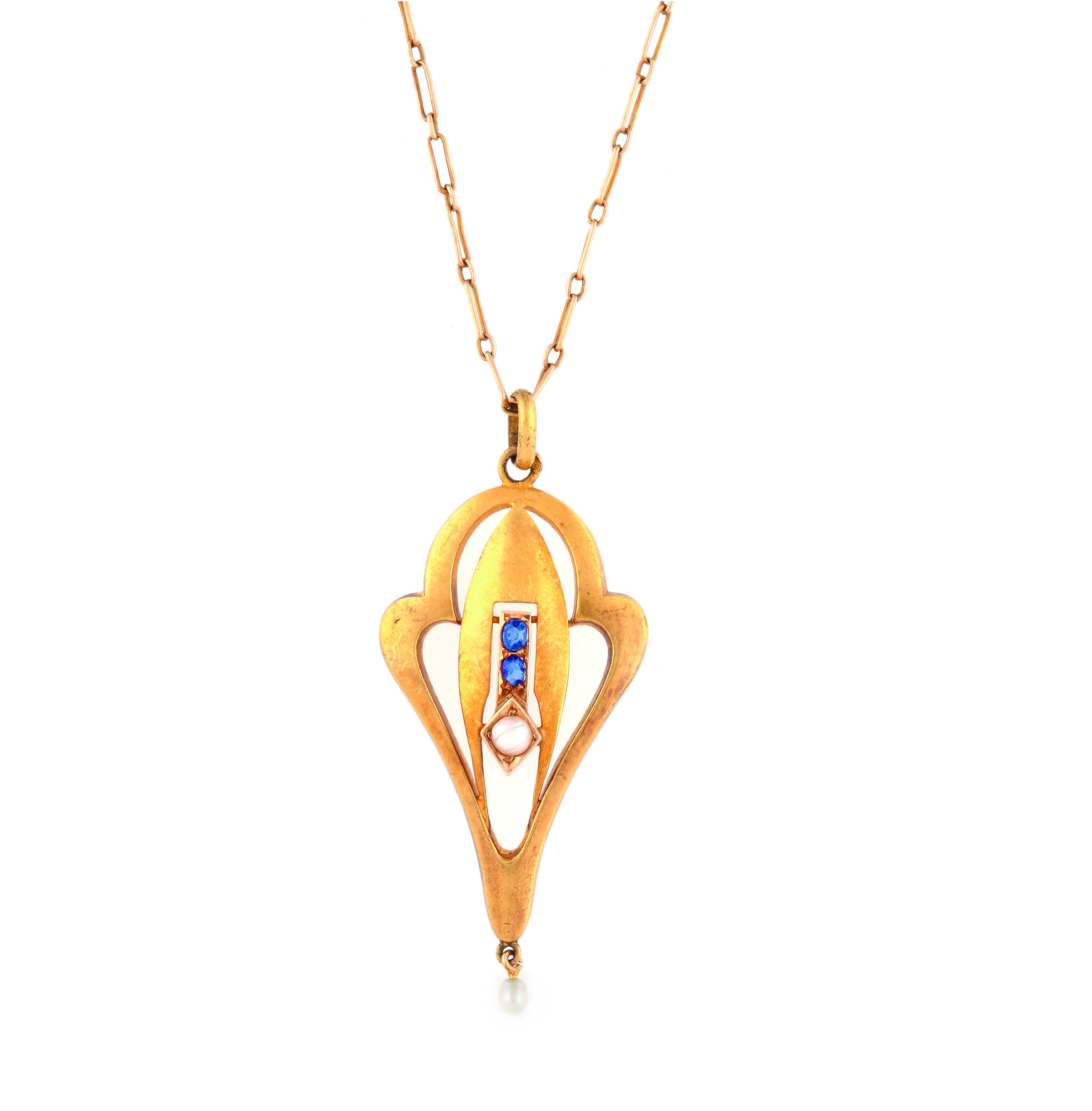 312. Pandantiv Art Nouveau din aur, ornat cu safire și perle, cca. 1910-1920