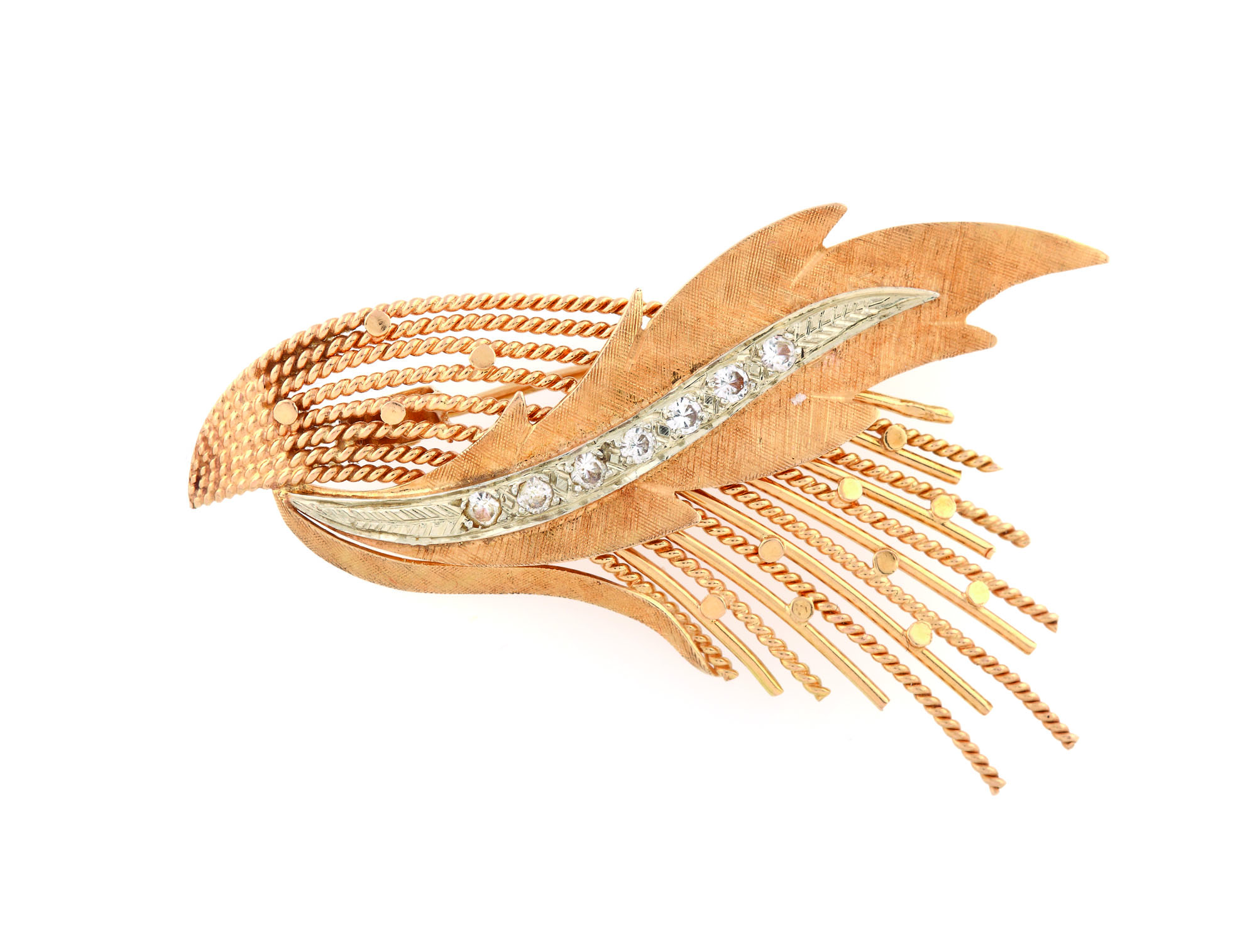 313. Broşă din aur, decorată cu pietre ornamentale, cca. 1940