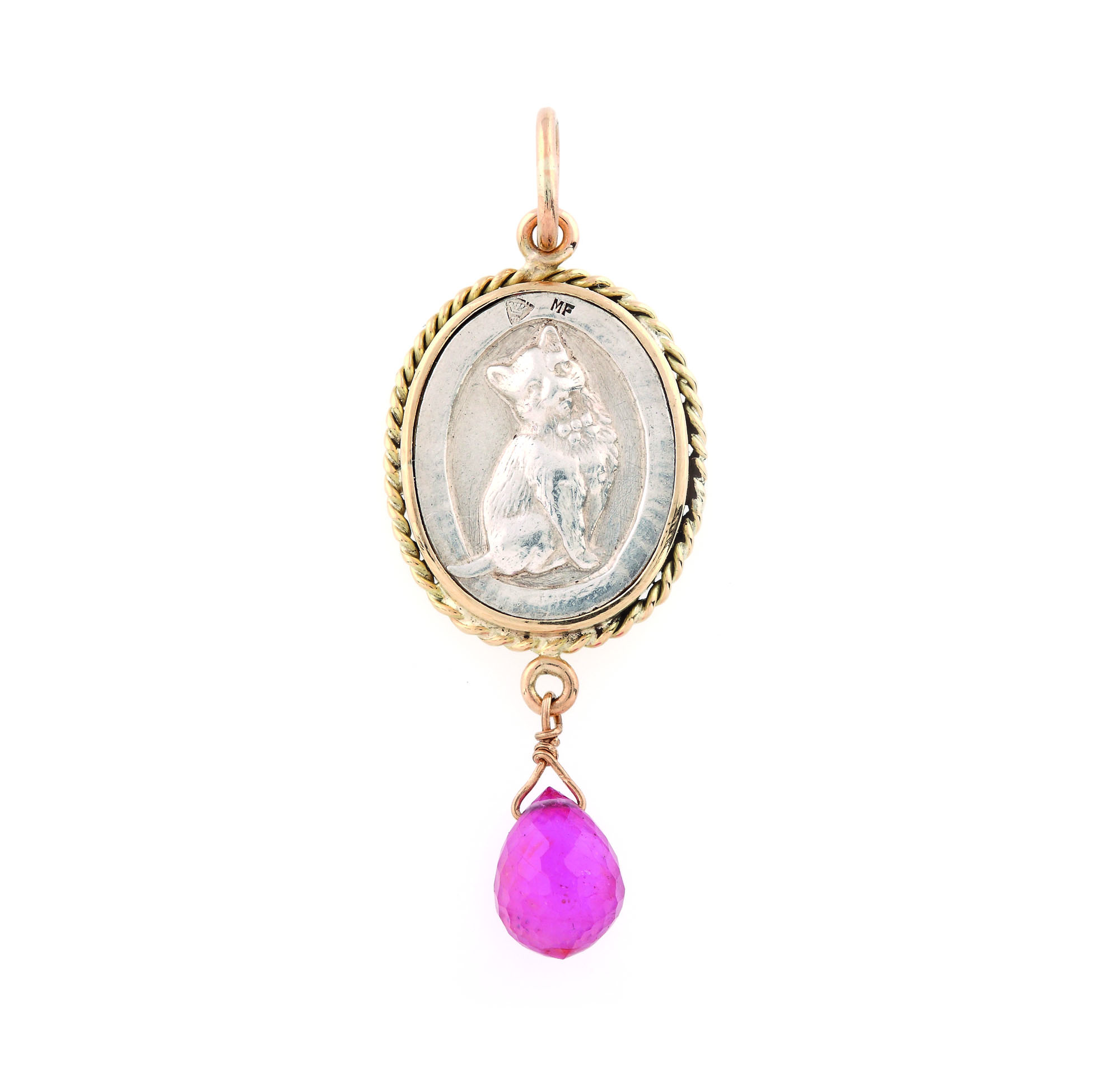 316. "Pisica" - pandantiv Novelty din aur şi argint, decorat cu rubin, cca. 1915