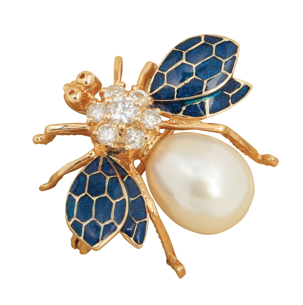 2. Broşă-albină din aur, decorată cu diamante şi perlă