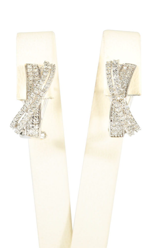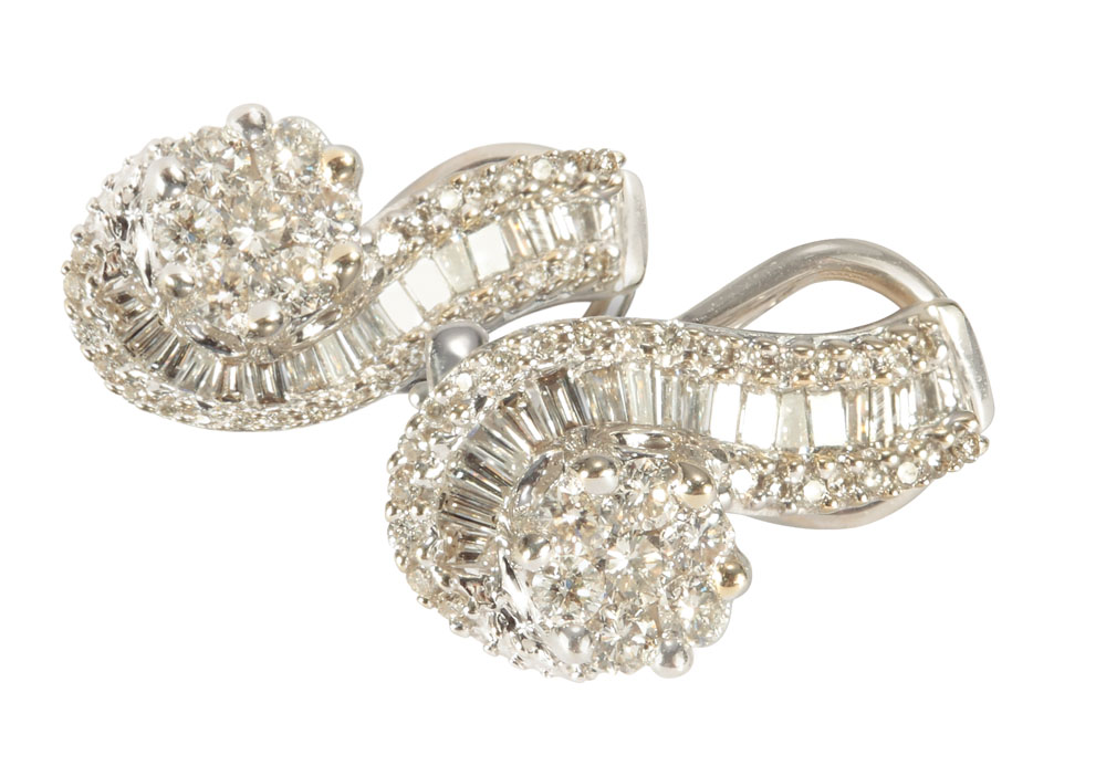 5. Pereche de cercei din aur alb şi diamante, decoraţi cu volute