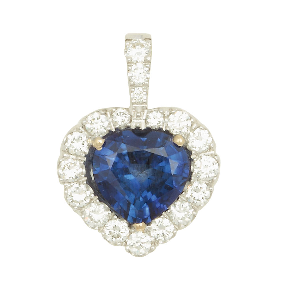 7. Pandantiv-inimă, din aur, decorat cu safir central şi diamante