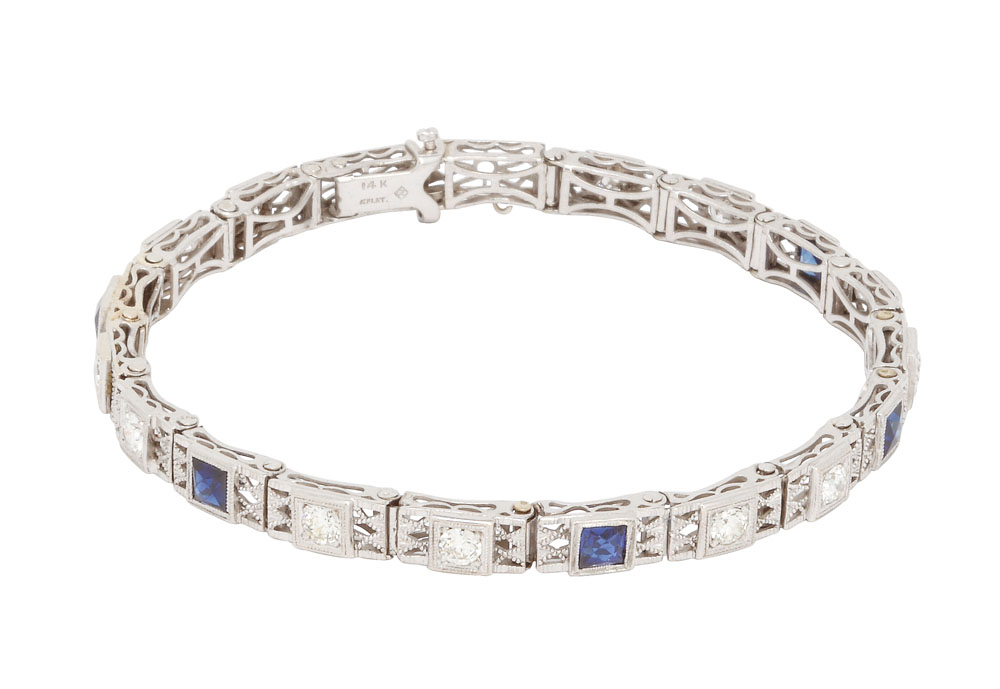 9. Brăţară din aur alb filigran, decorată cu safire şi diamante