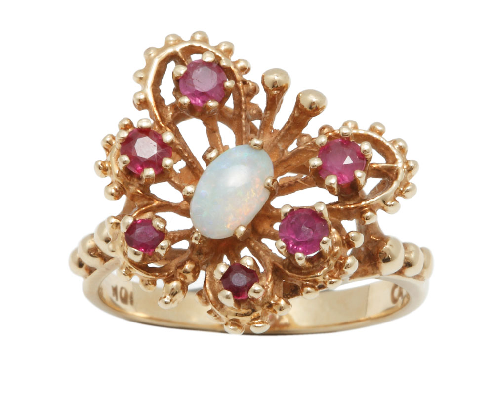 12. "Butterfly" - inel din aur, decorat cu opal şi rubine