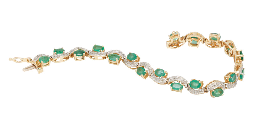 13. Brăţară din aur, decorată cu smaralde şi diamante