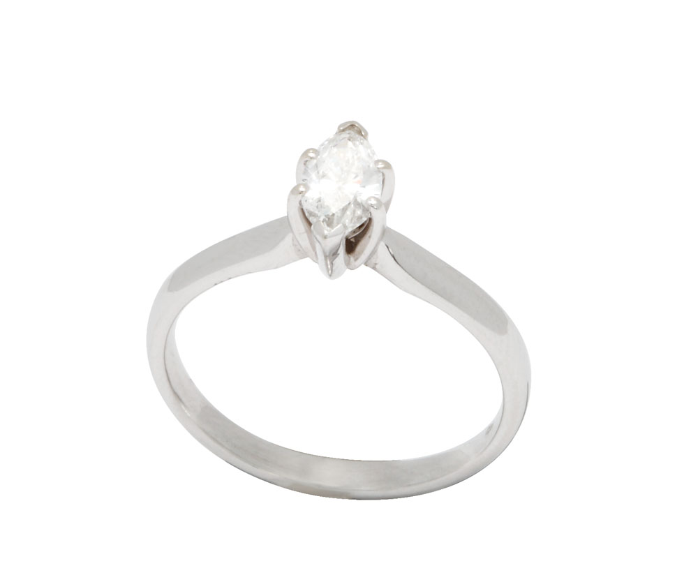 15. Inel "solitaire" din platină, decorat cu diamant marchiză