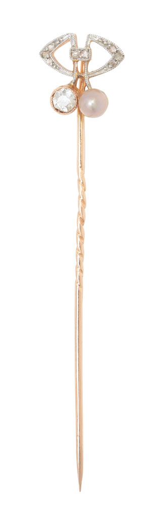 16. Ac de pălărie din aur, decorat cu diamante şi perlă, manieră Art Nouveau