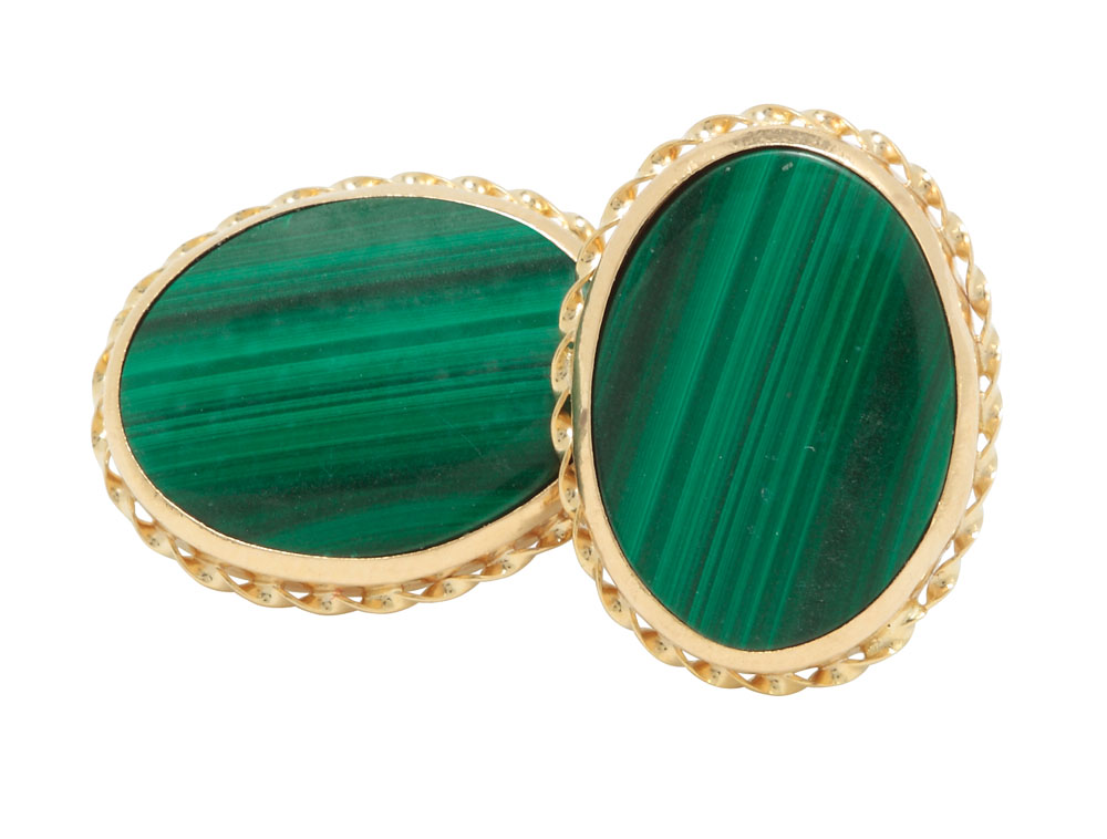 17. Pereche de cercei din aur și malachit