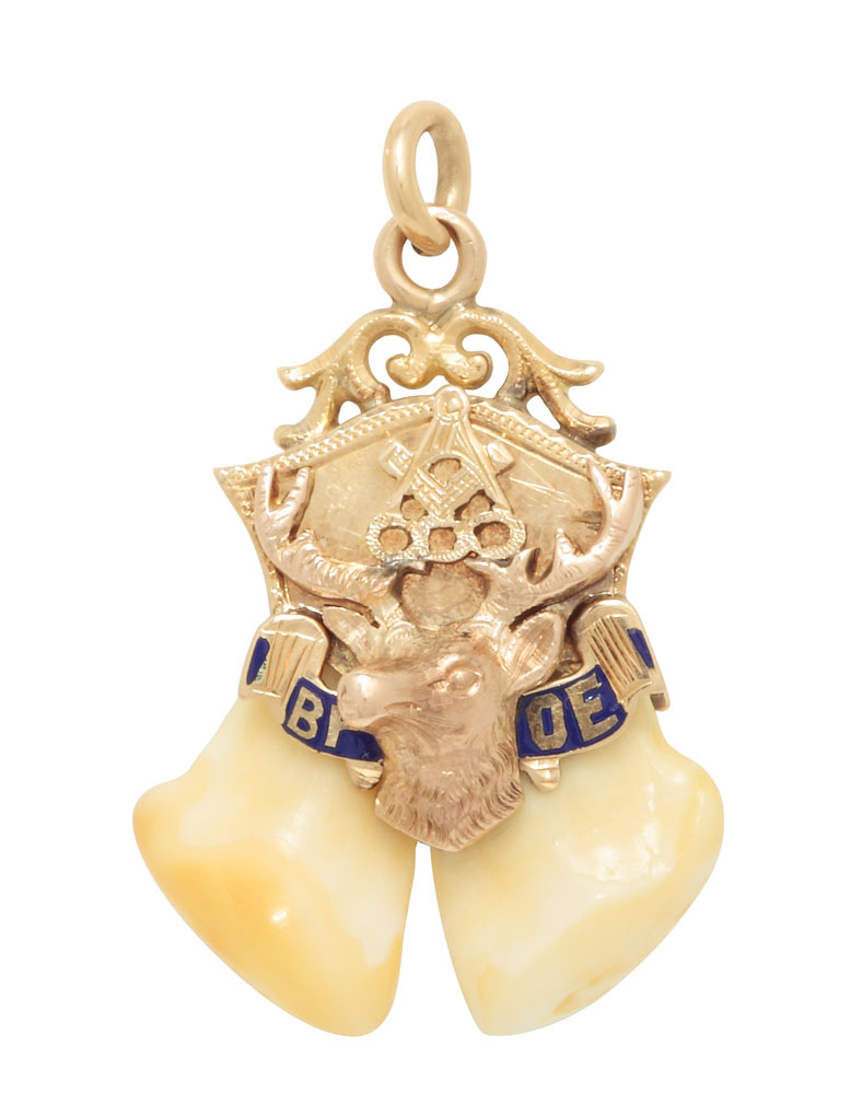 21. Pandantiv al Ordinului "Benevolent and Protective Order of Elks", din aur și os de cerb