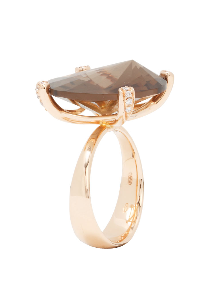 22. Inel din aur Gilberto Preda, decorat cu cuarţ fumuriu și diamante, tăietură unică