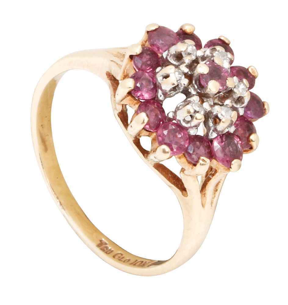 25. Inel din aur, decorat cu diamante şi rubine