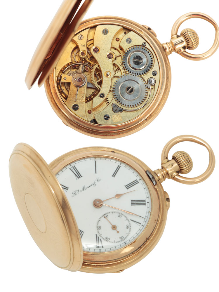 26. Ceas pandantiv Moser, din aur, cu trei capace, decorat cu cercuri guilloche