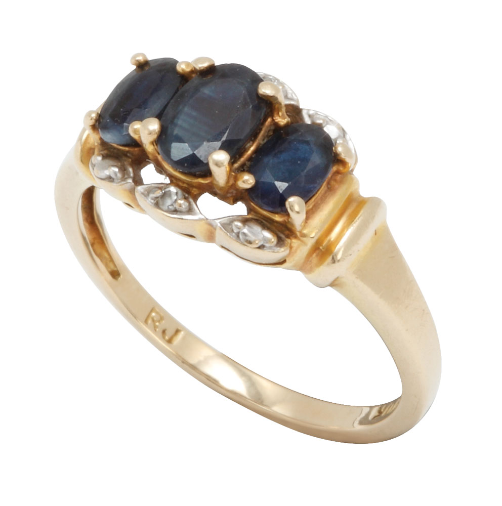 28. Inel din aur, decorat cu diamante şi safire
