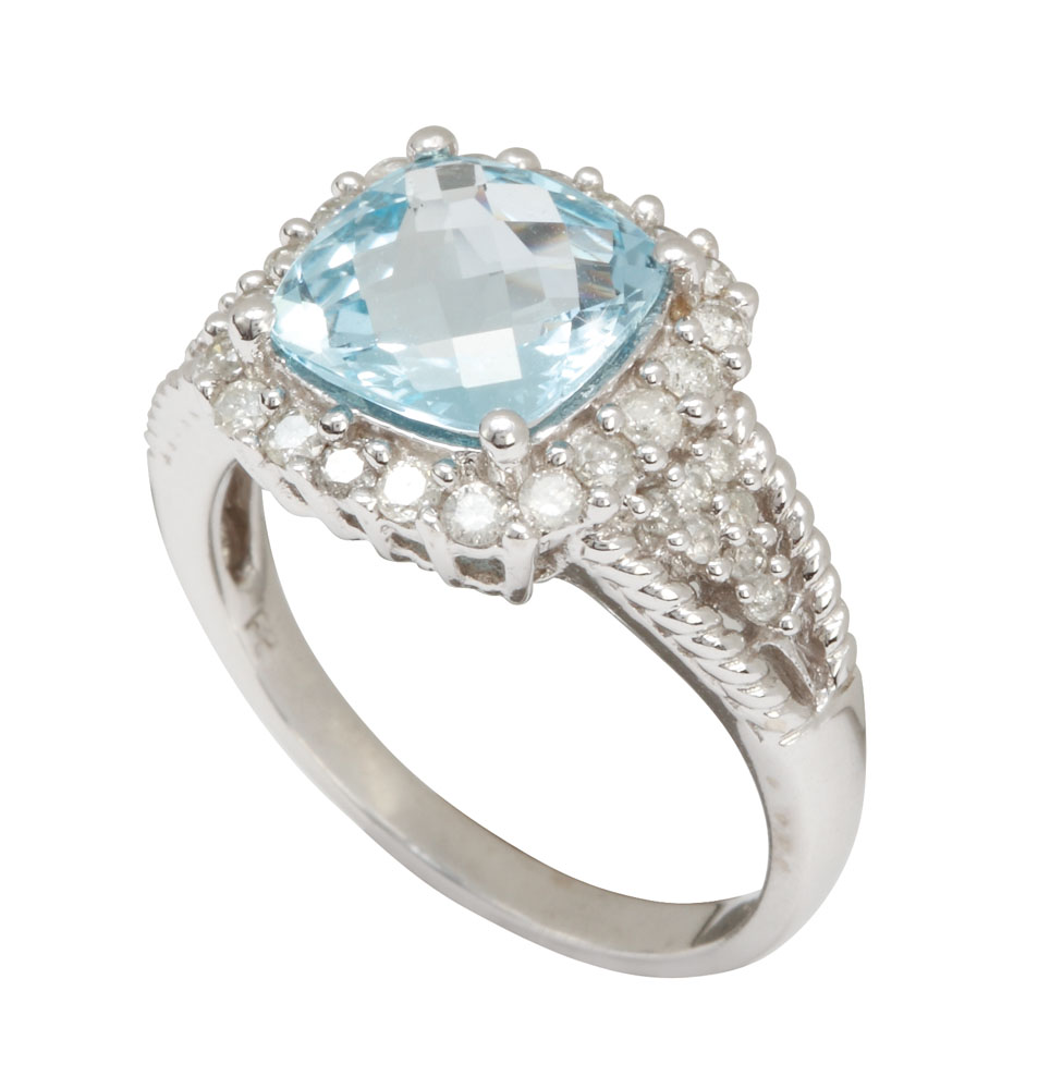 33. Inel din aur, decorat cu aquamarin brazilian şi diamante