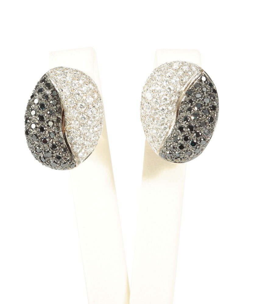36. "Yin-yang" - pereche de cercei Leo Pizzo, din aur alb cu diamante albe şi negre