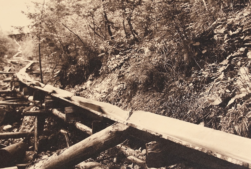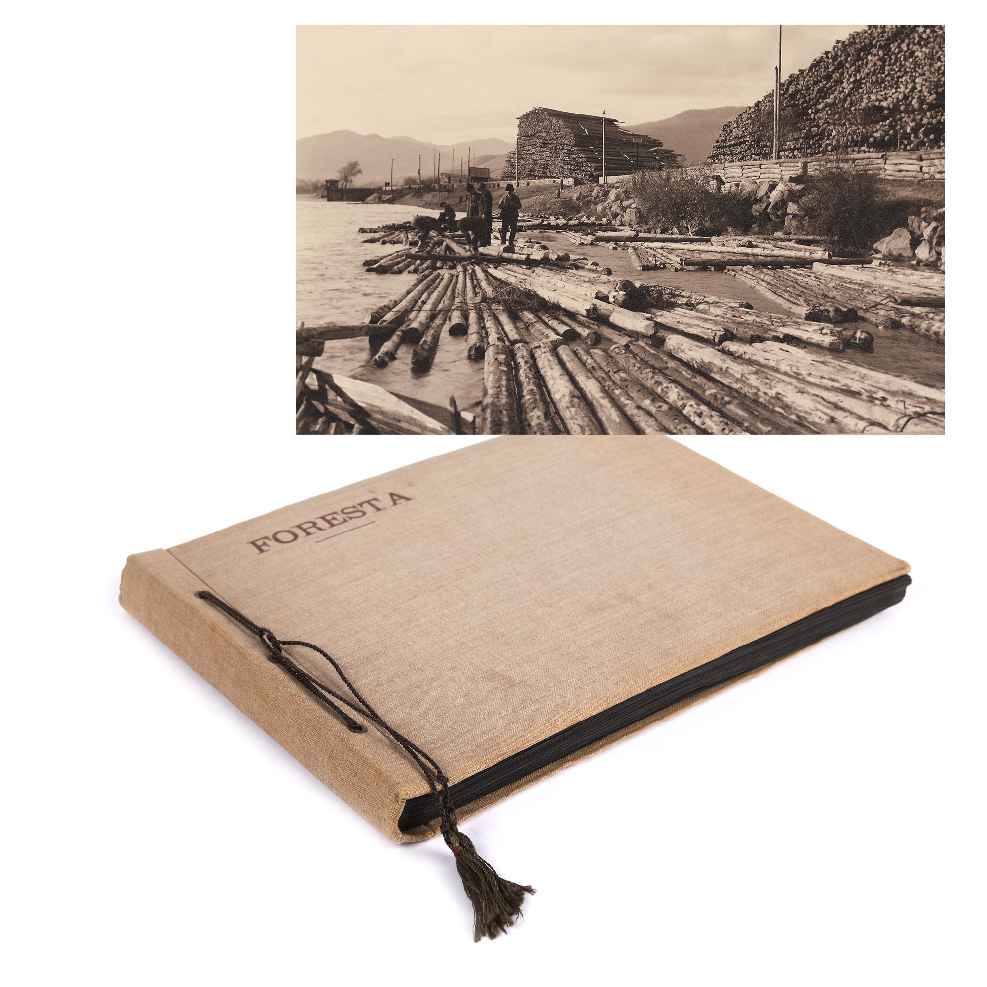 53. Album fotografic "Foresta", conținând 33 de fotografii ilustrând industria de prelucrare a lemnului în Carpați, ediție bilingvă româno-italiană, perioada interbelică, piesă rară