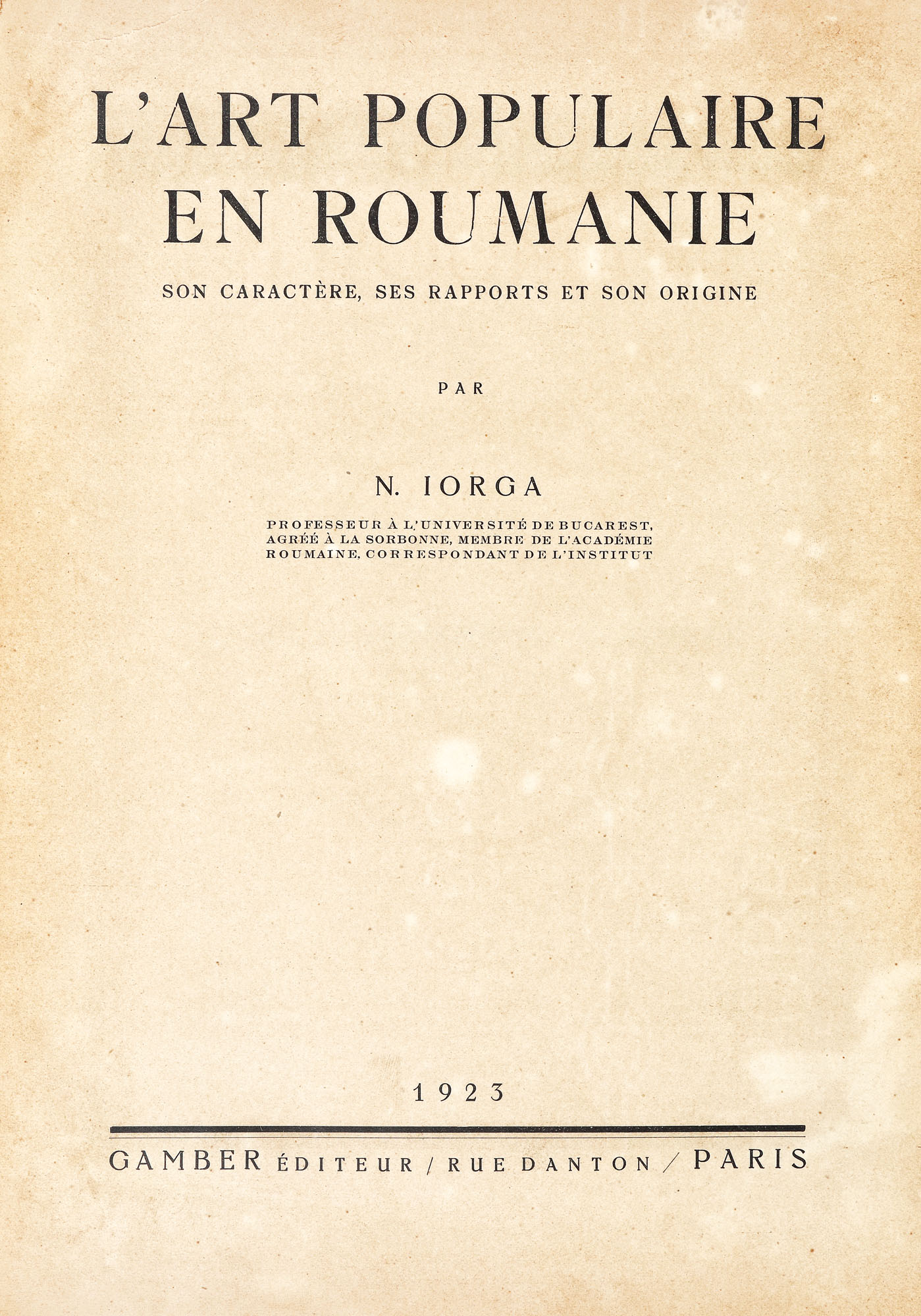 13. ”Arta populară în România”, de Nicolae Iorga, franceză, Paris, 1923