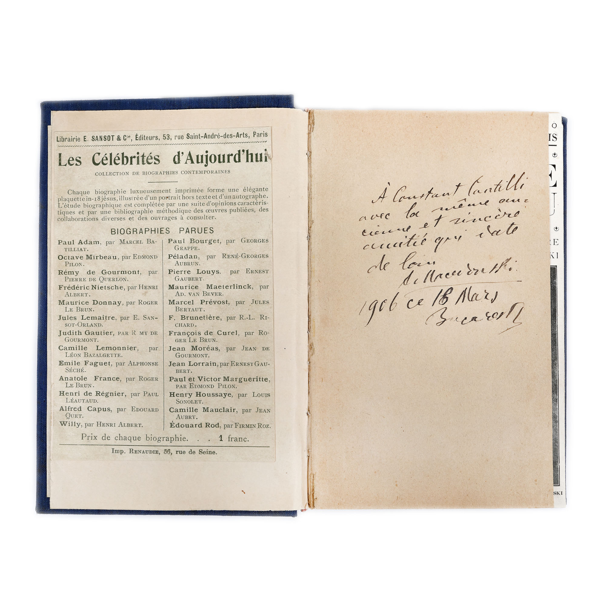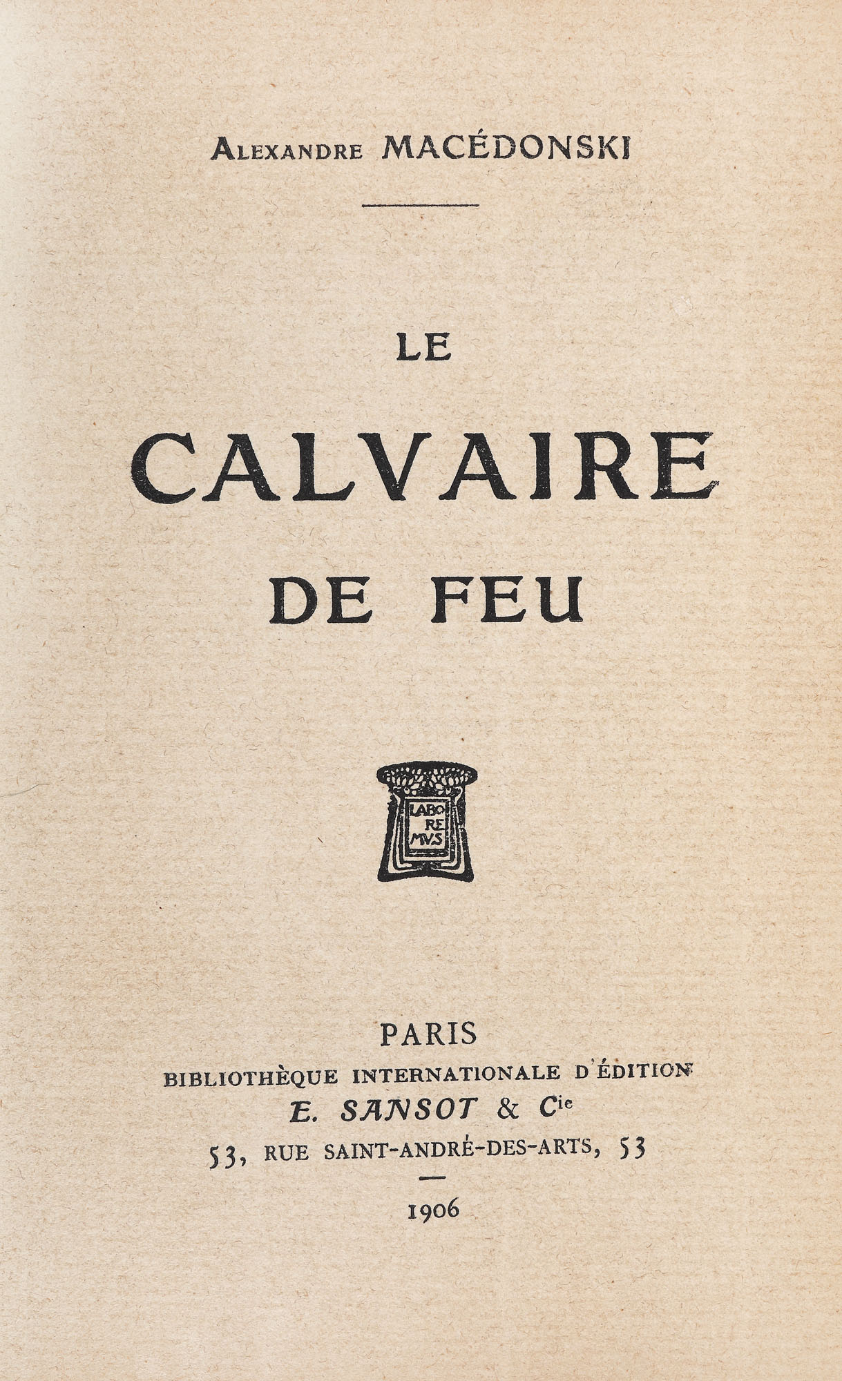 10. ”Calvarul Focului”, de Alexandru Macedonski, franceză, ediție princeps, Paris, 1906, cu dedicația olografă a autorului către poetul Constant Cantilli
