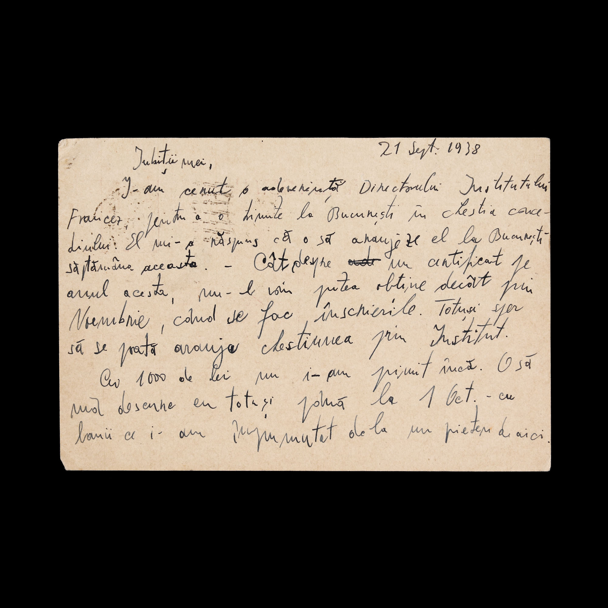26. Carte poștală trimisă de Emil Cioran către tatăl său, Emilian Cioran, Paris, 1938