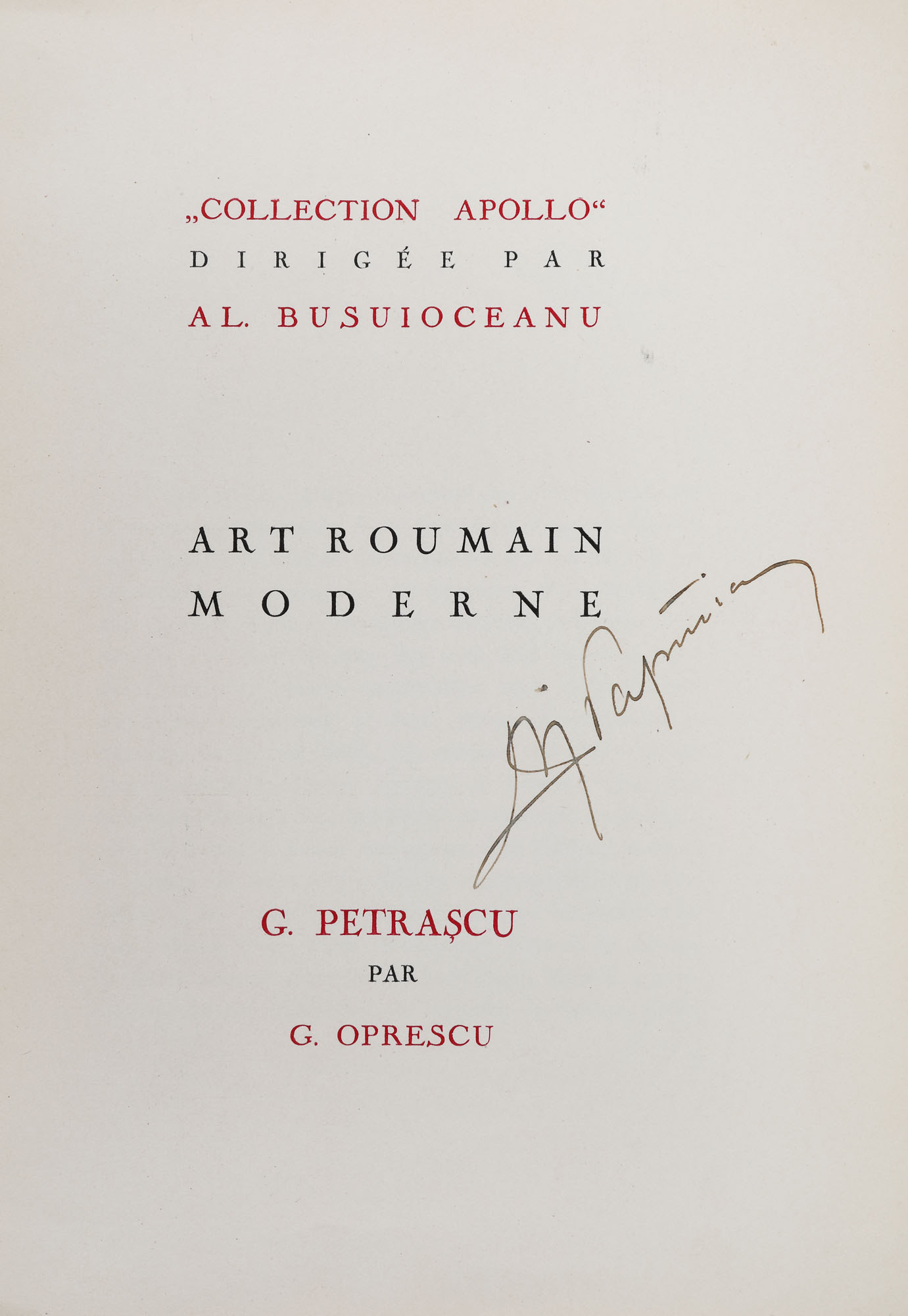 11. ”Gheorghe Petrașcu”, de George Oprescu, franceză, Craiova, 1931, cu dedicația autorului către anatomistul Victor Papilian și ex-librisul acestuia, provine din colecția istorică Șerban Țuculescu-Maria Galaction