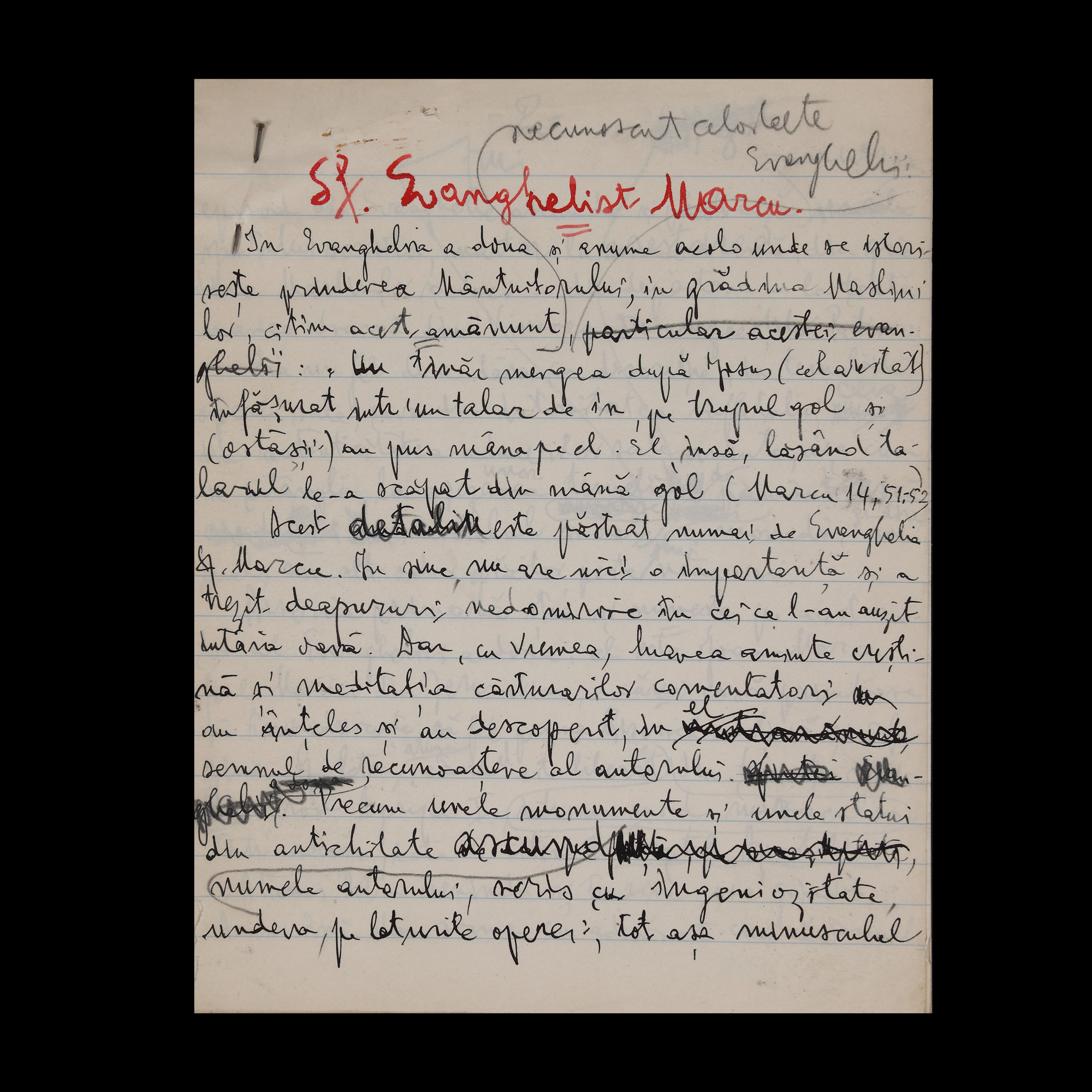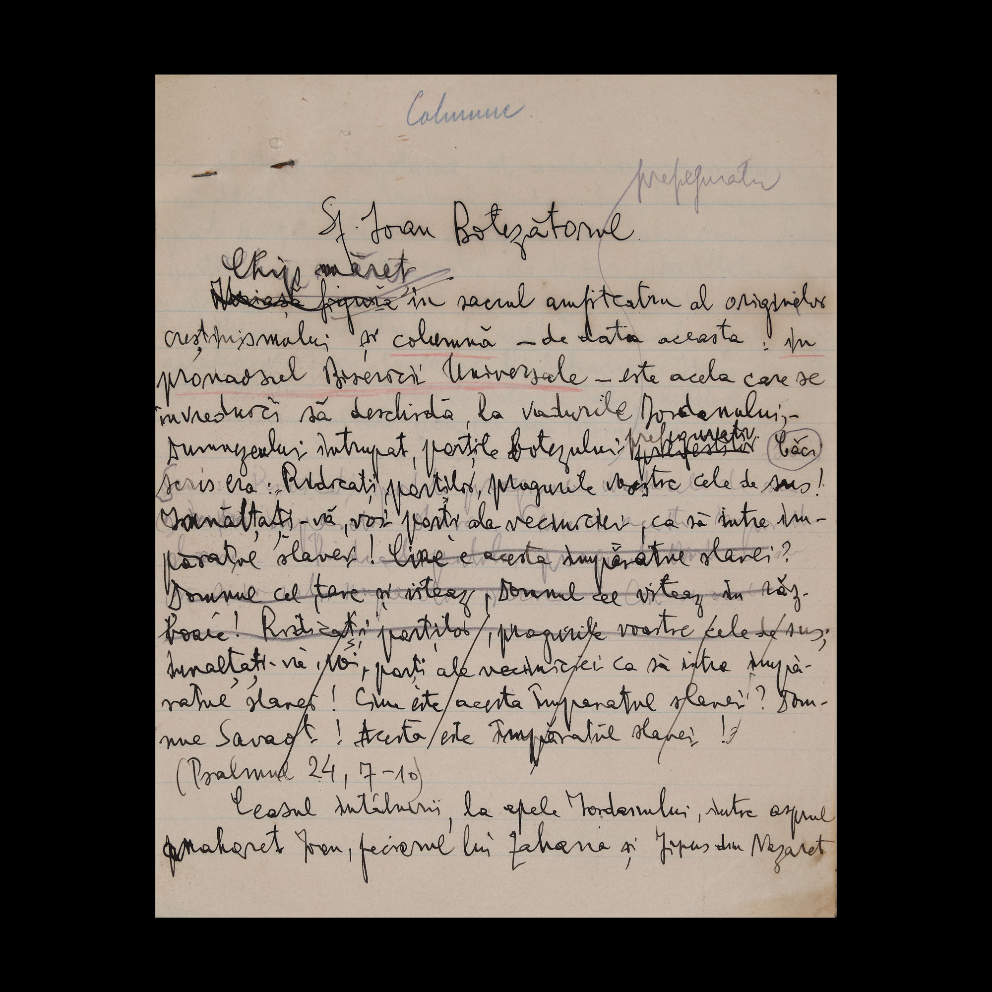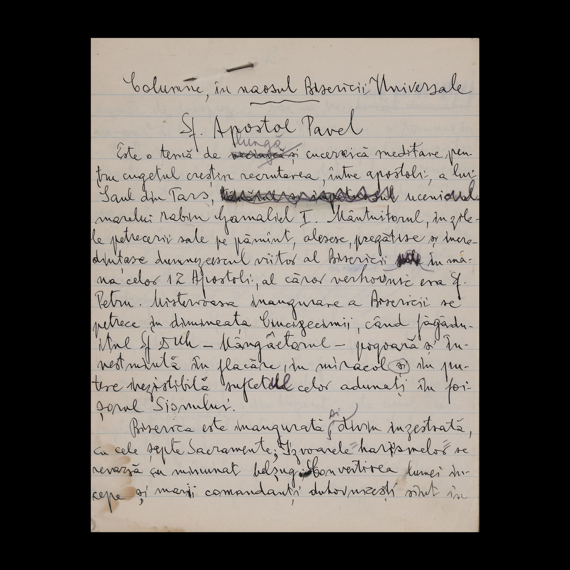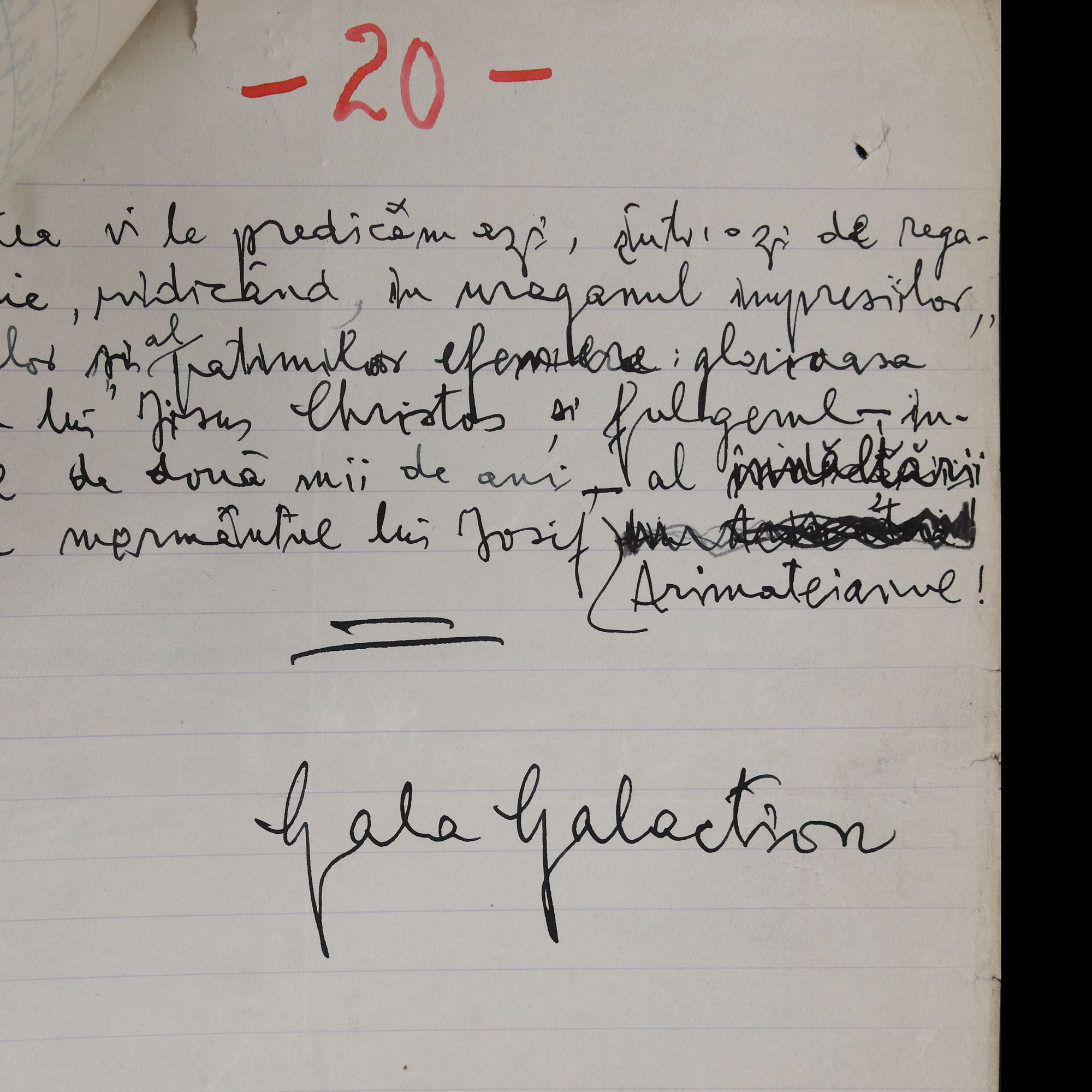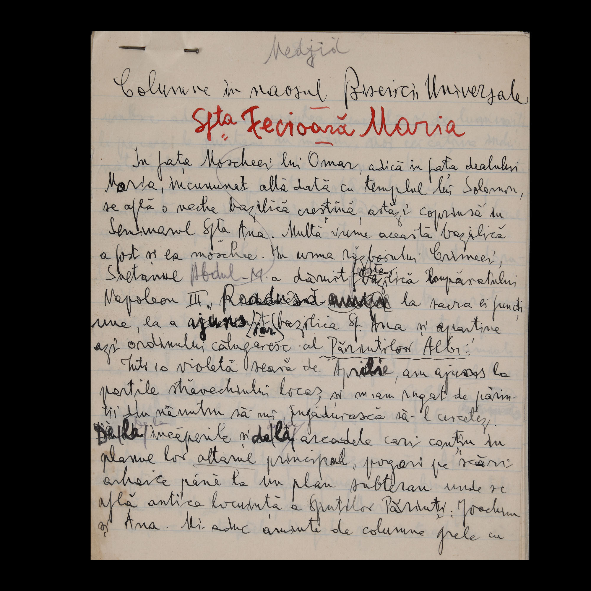 42. Manuscrise din ciclul ”Columne în naosul Bisericii Universale”, de Gala Galaction, cca. 1930, provine din colecția istorică Șerban Țuculescu-Maria Galaction (106 file)