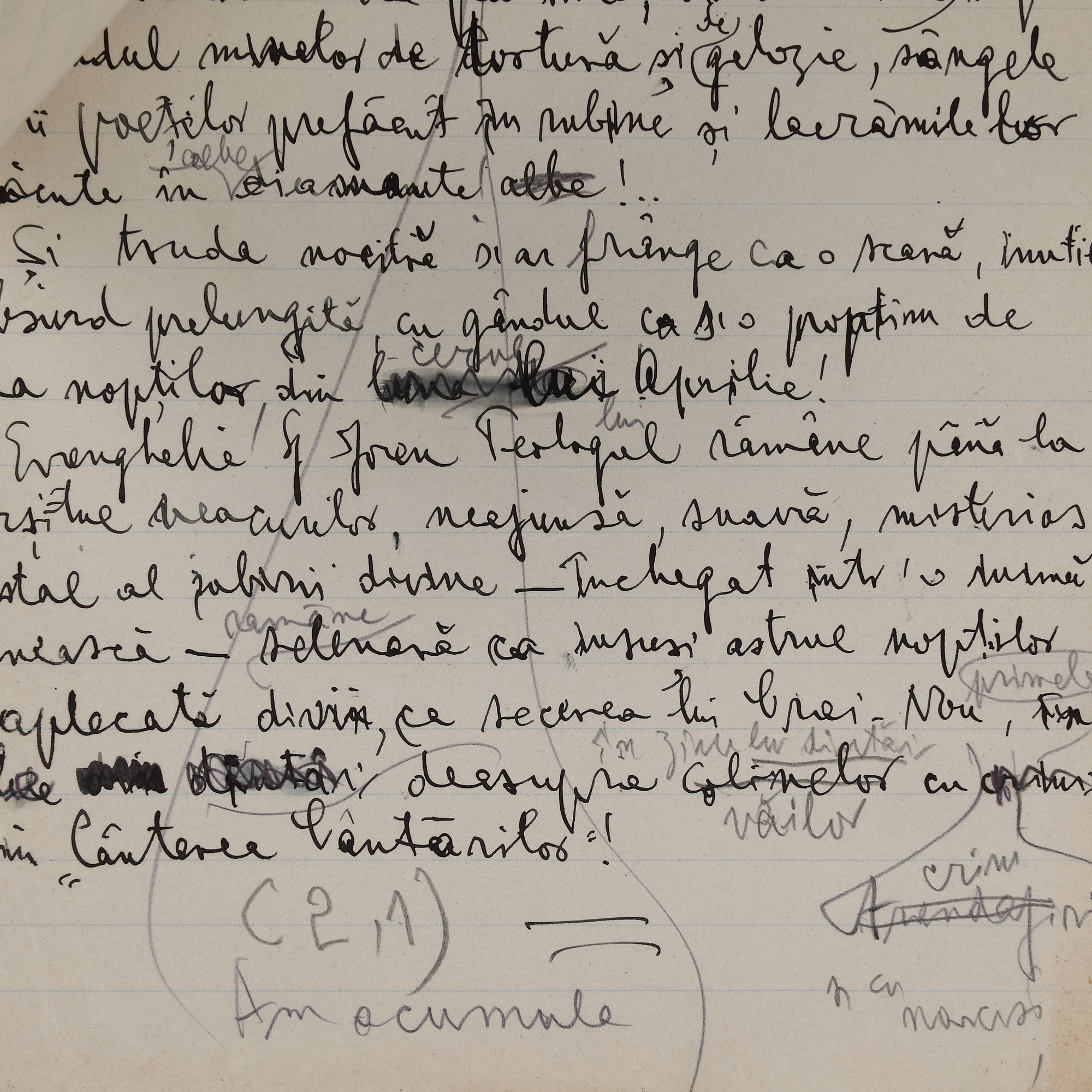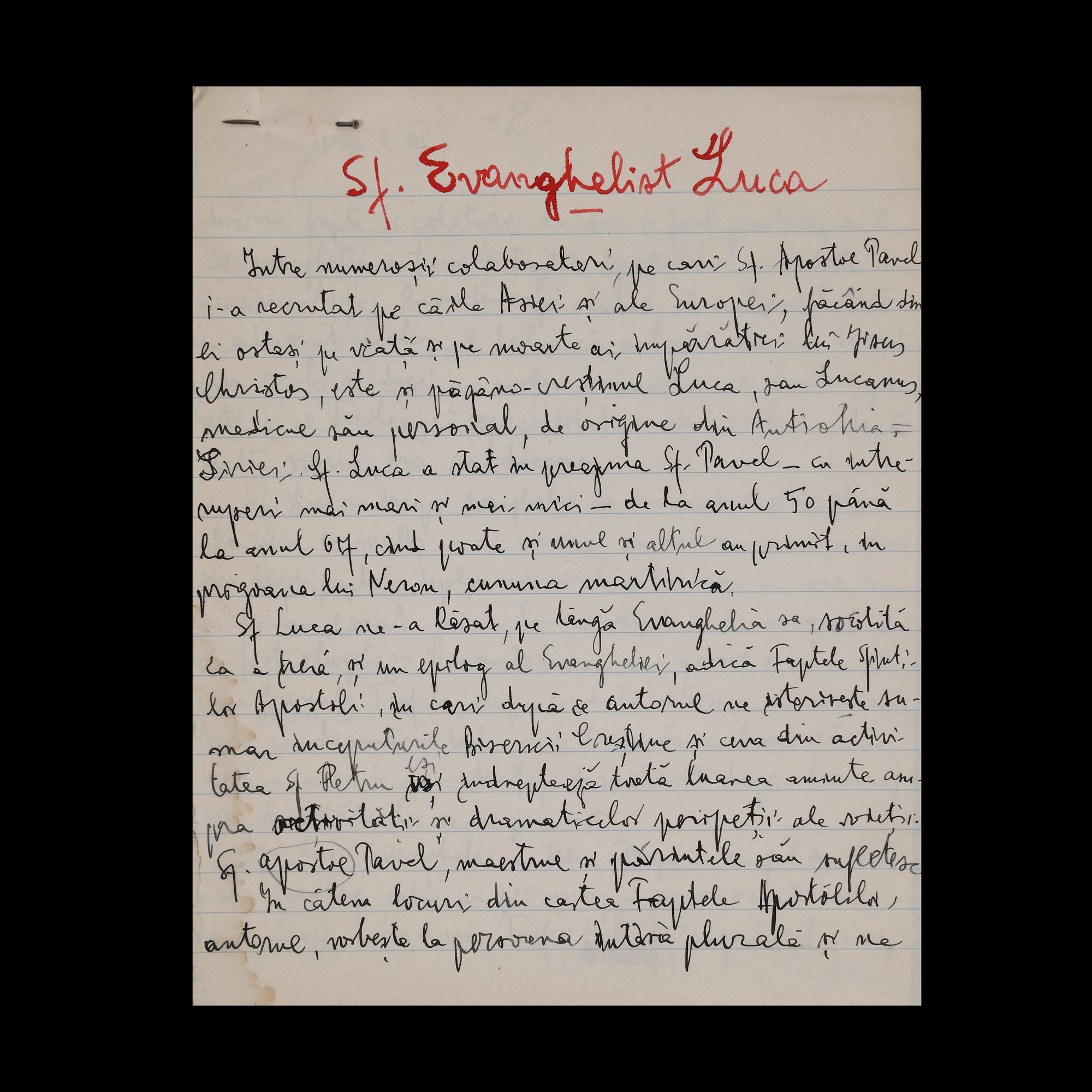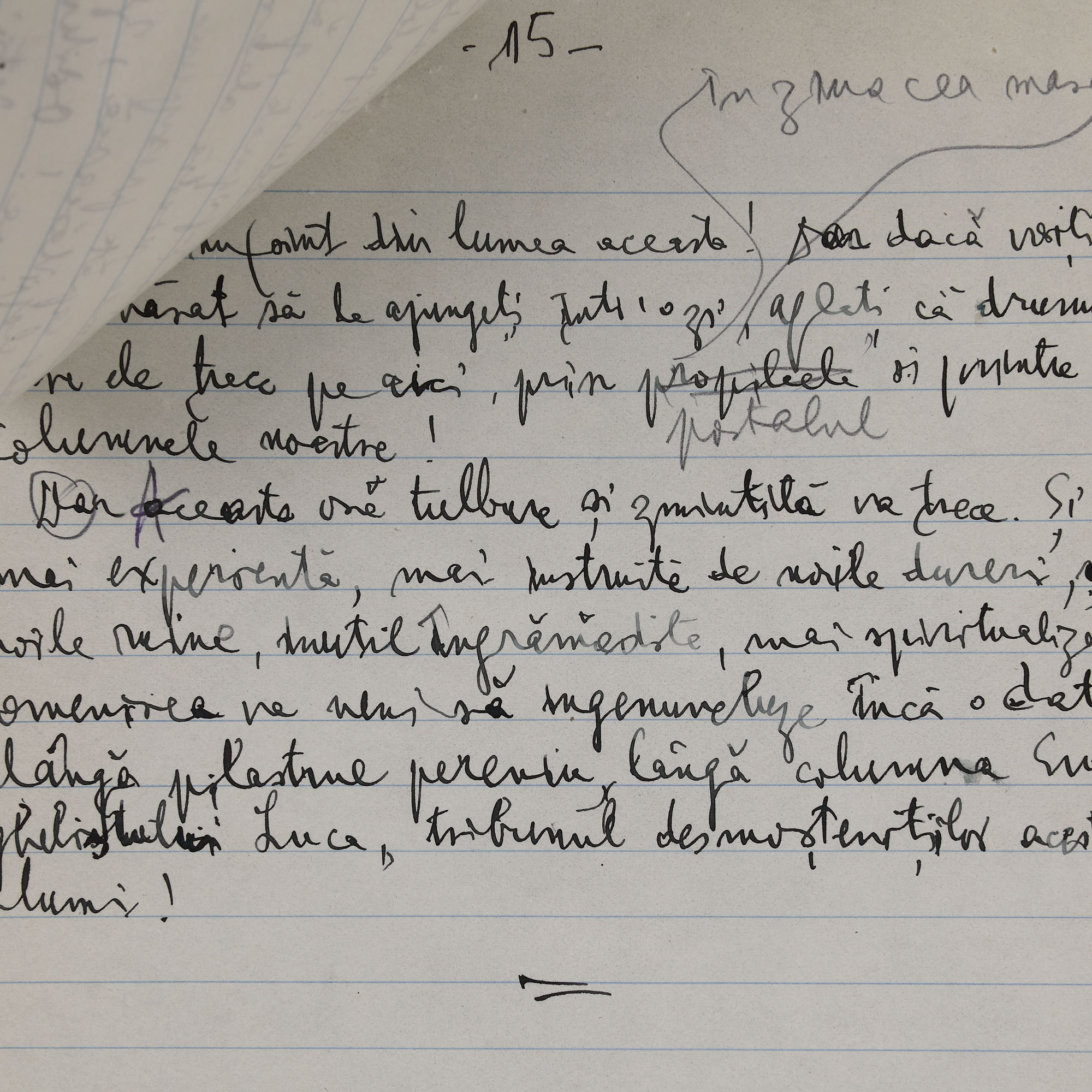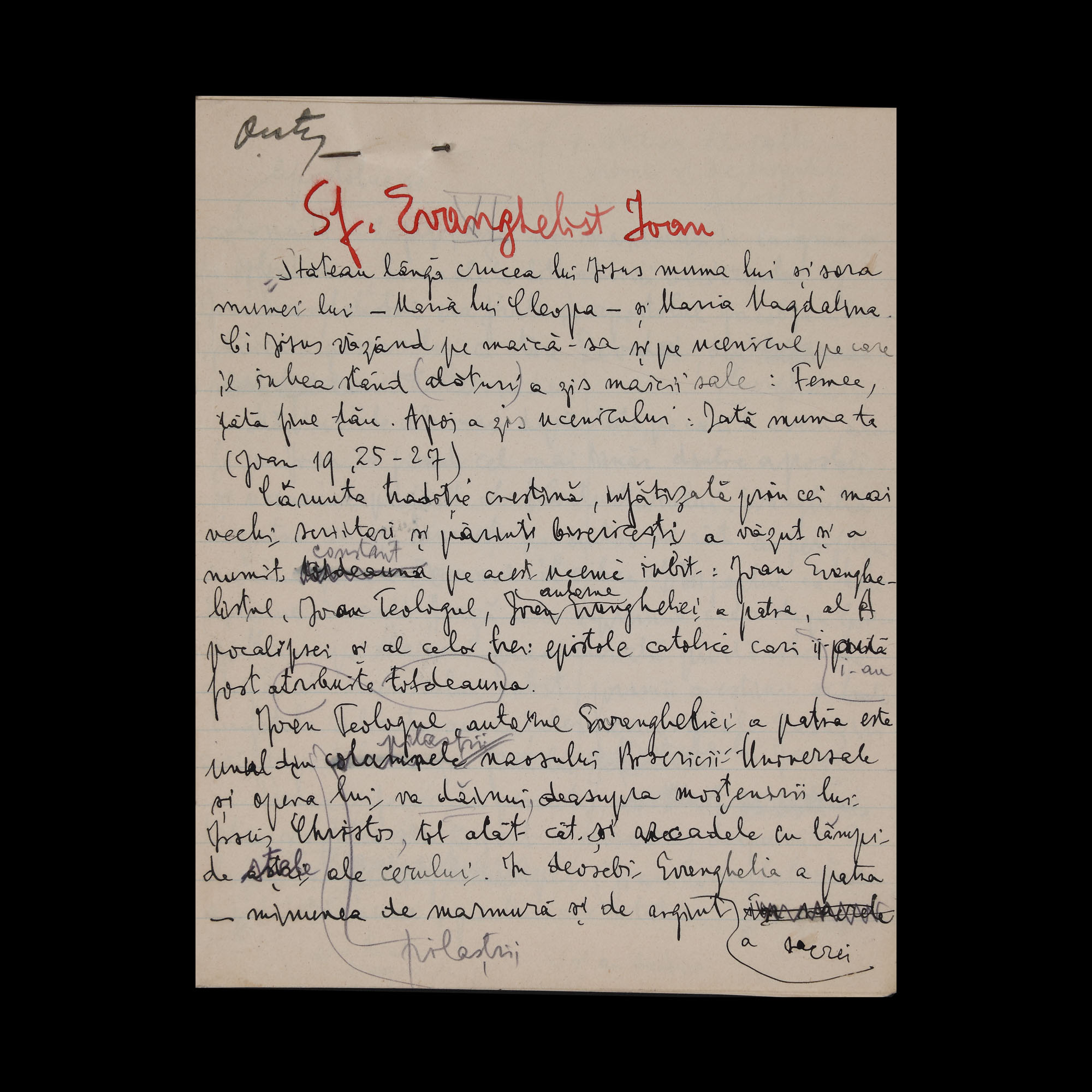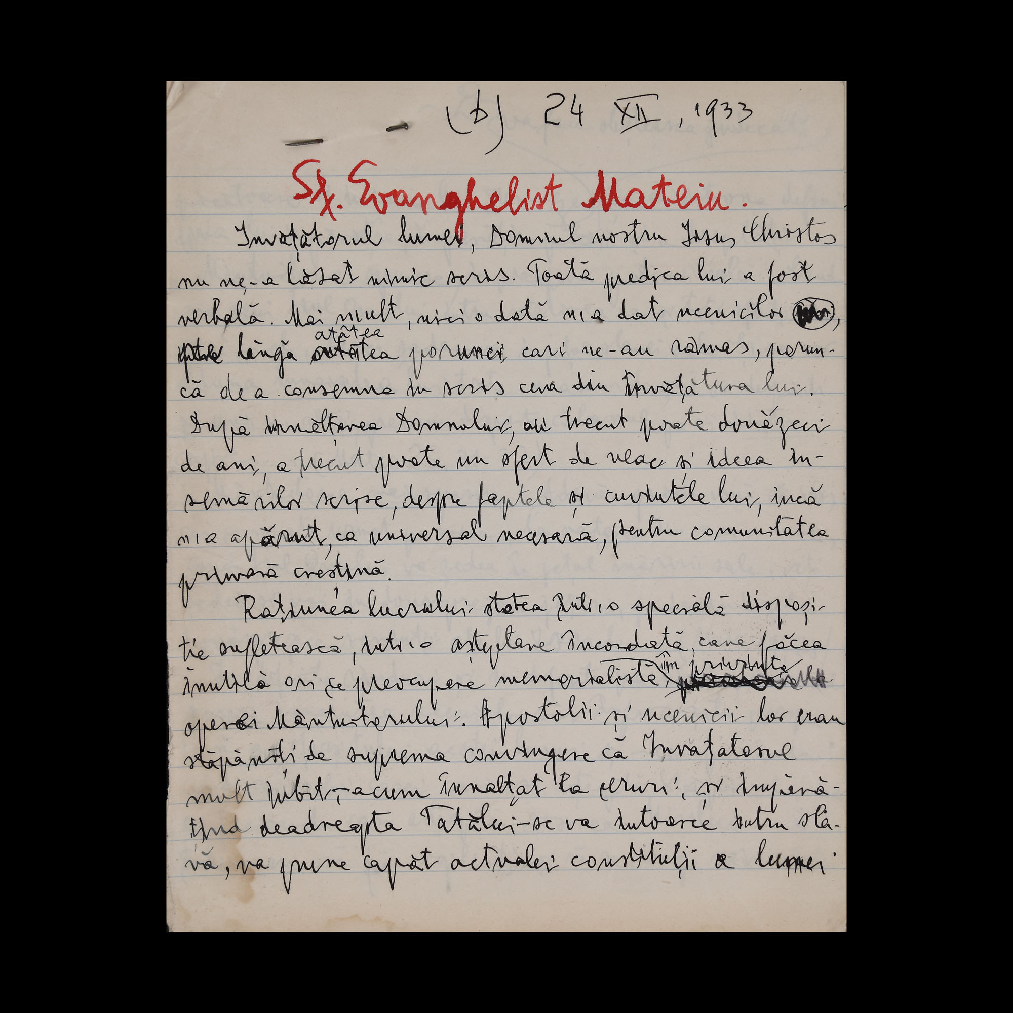42. Manuscrise din ciclul ”Columne în naosul Bisericii Universale”, de Gala Galaction, cca. 1930, provine din colecția istorică Șerban Țuculescu-Maria Galaction (106 file)