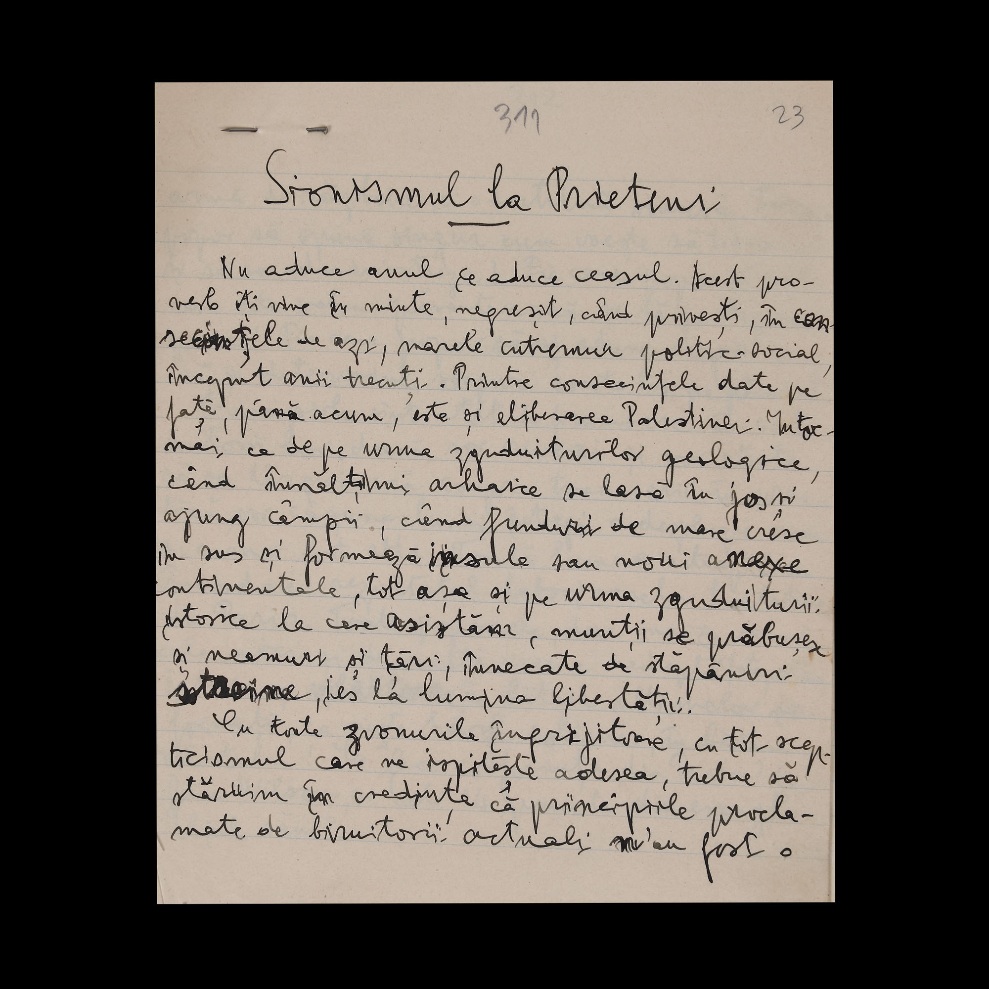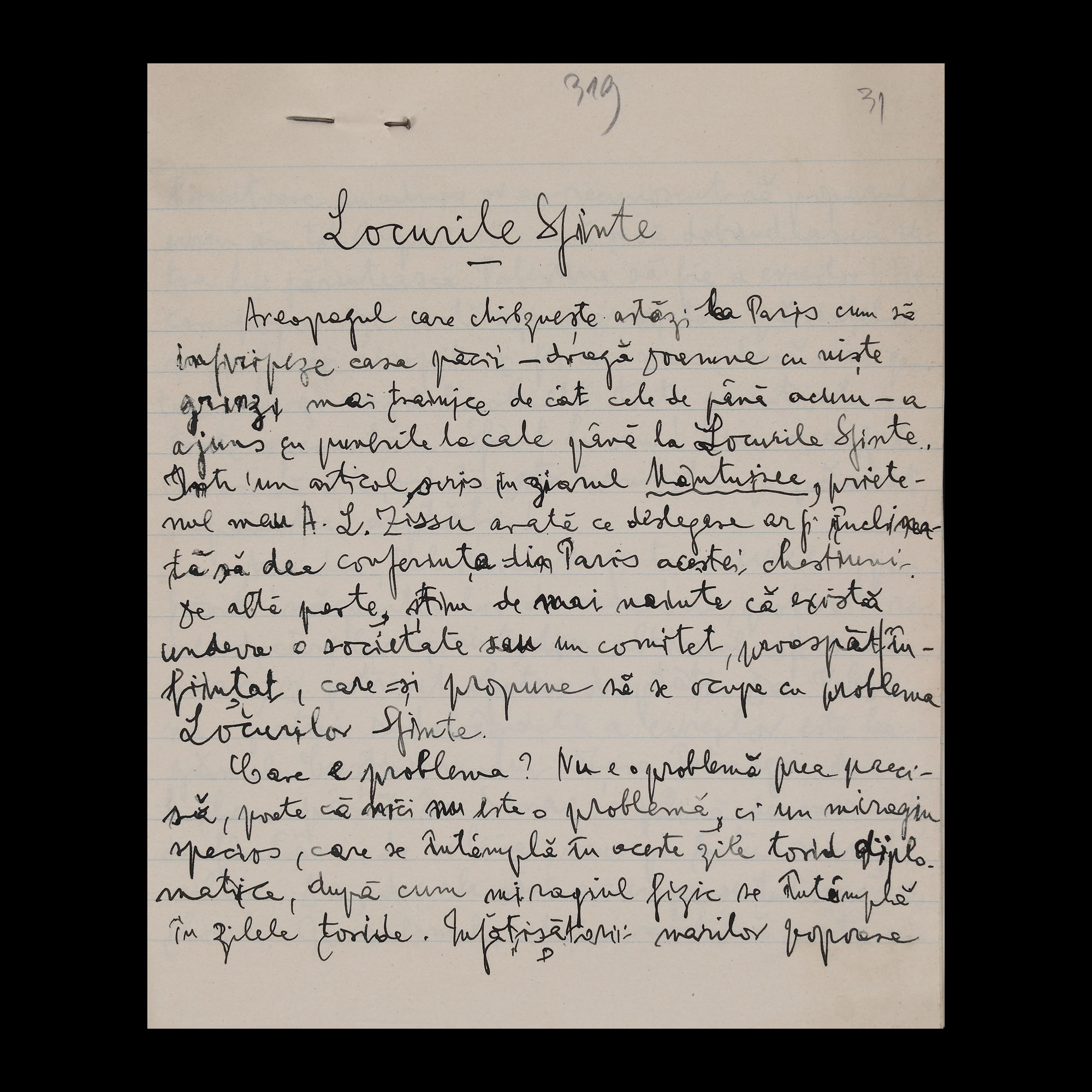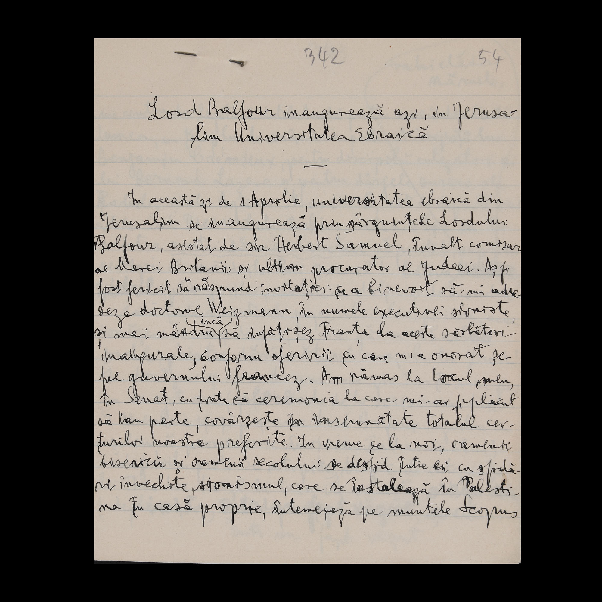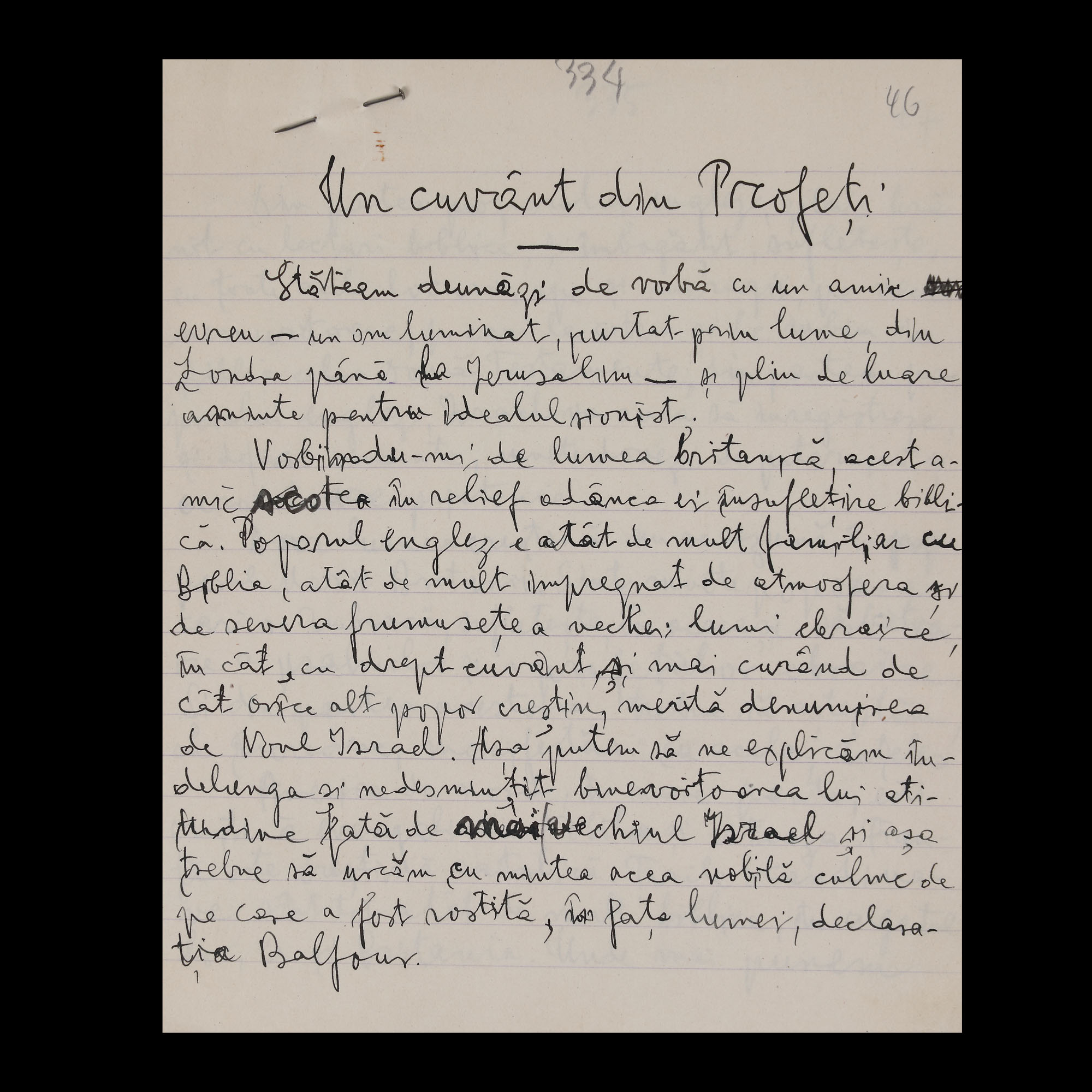 38. Manuscrise olografe din ciclul ”Pro Israel”, de Gala Galaction, 1919-1925, provine din colecția istorică Șerban Țuculescu-Maria Galaction, piesă rară, de colecție (38 file)